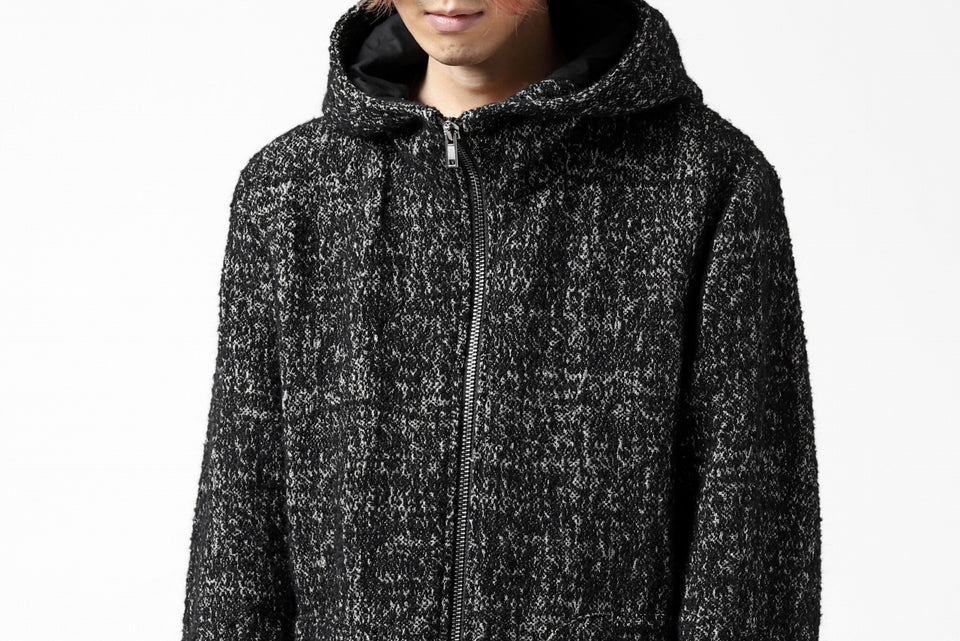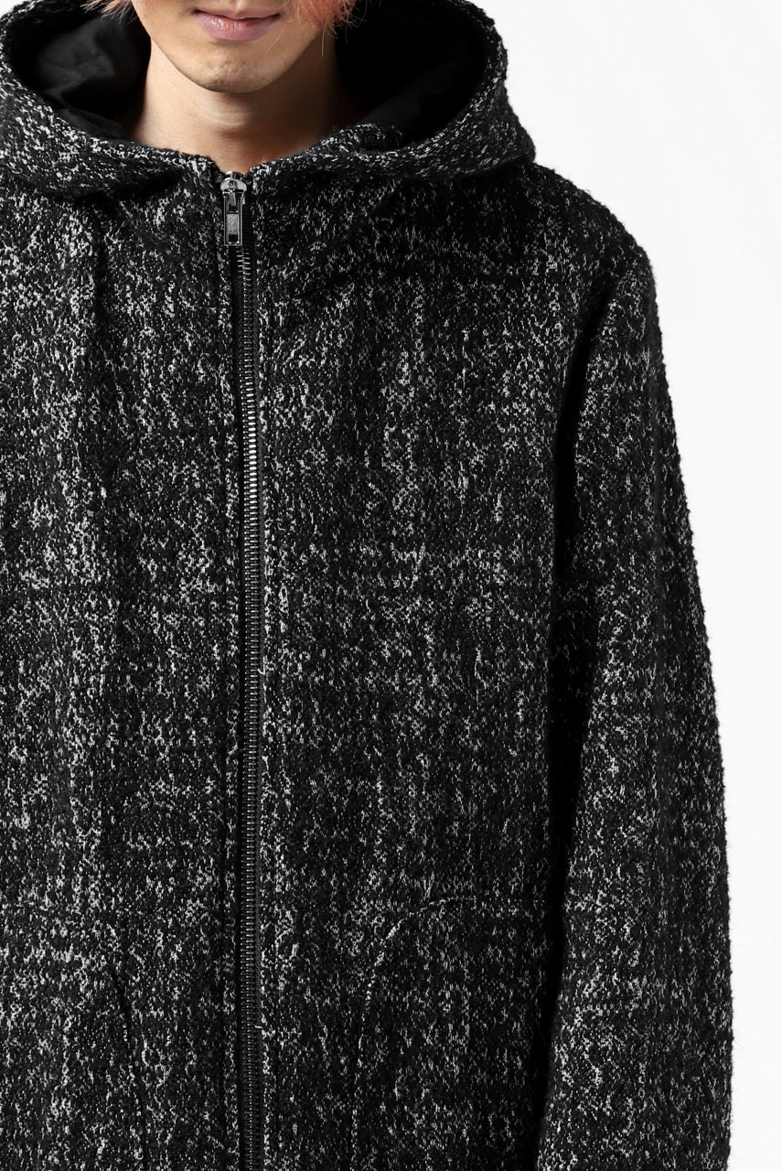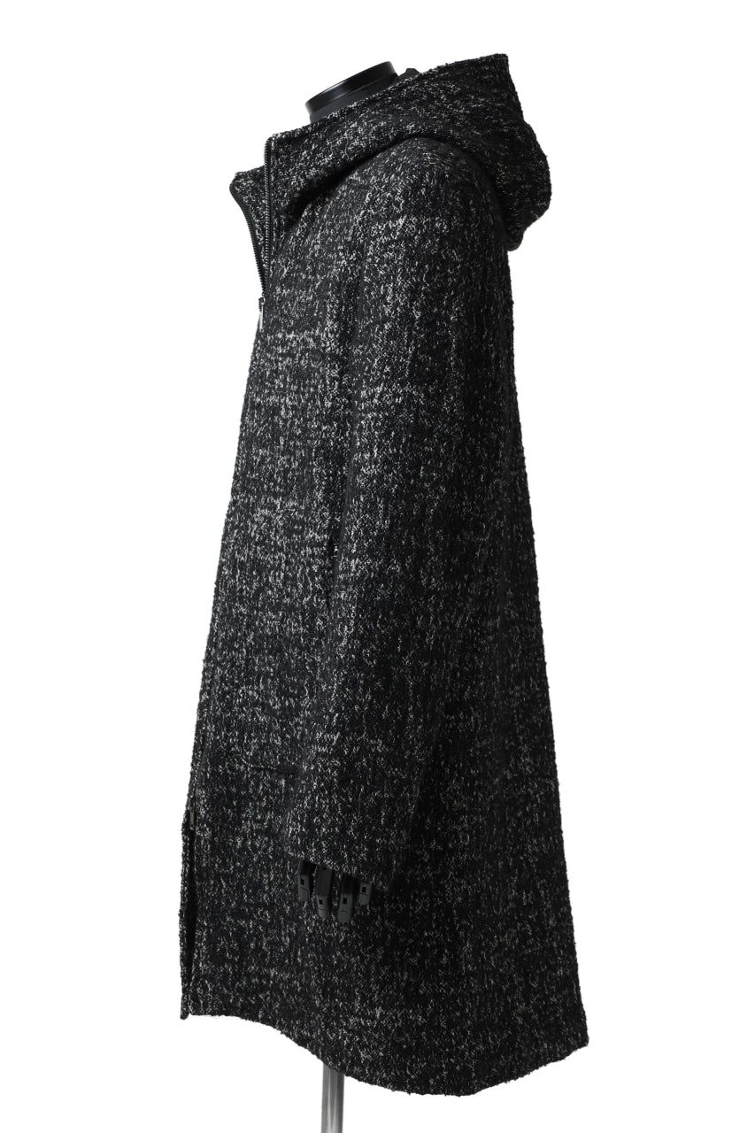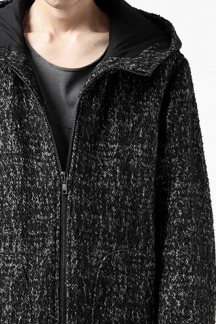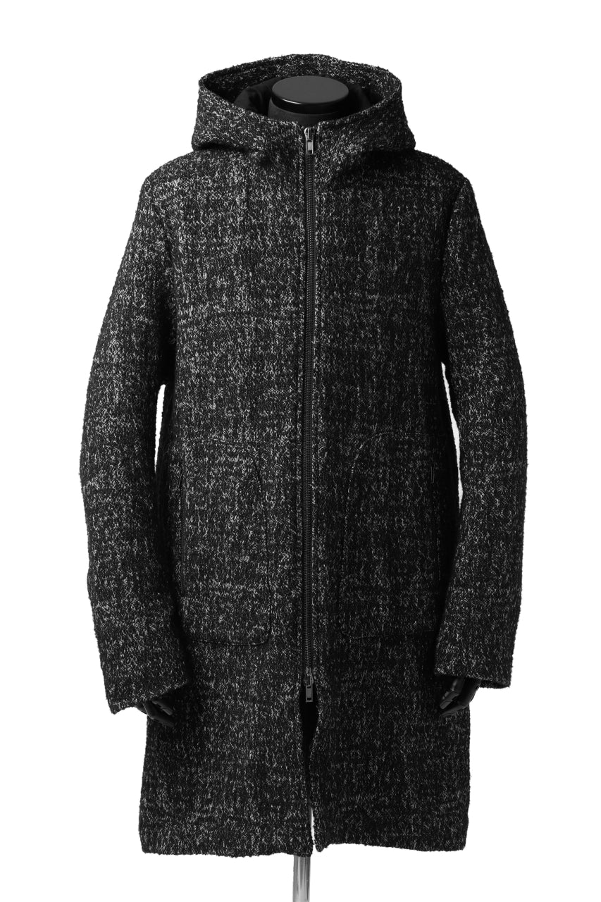 daub HOODED LONG ZIP COAT / MERANGE KNITTED (BLACK)