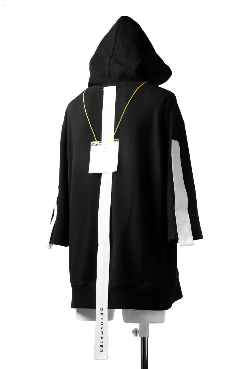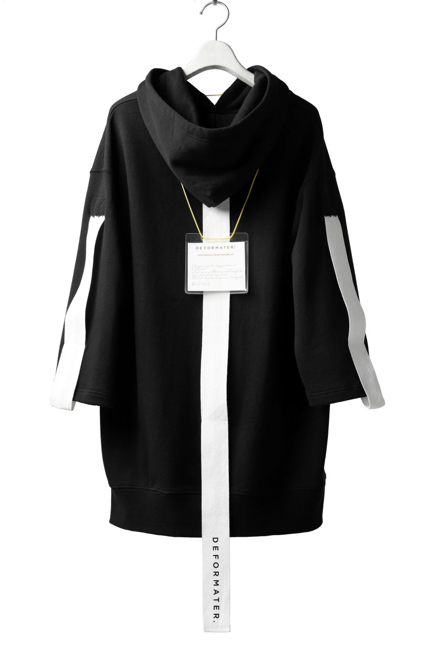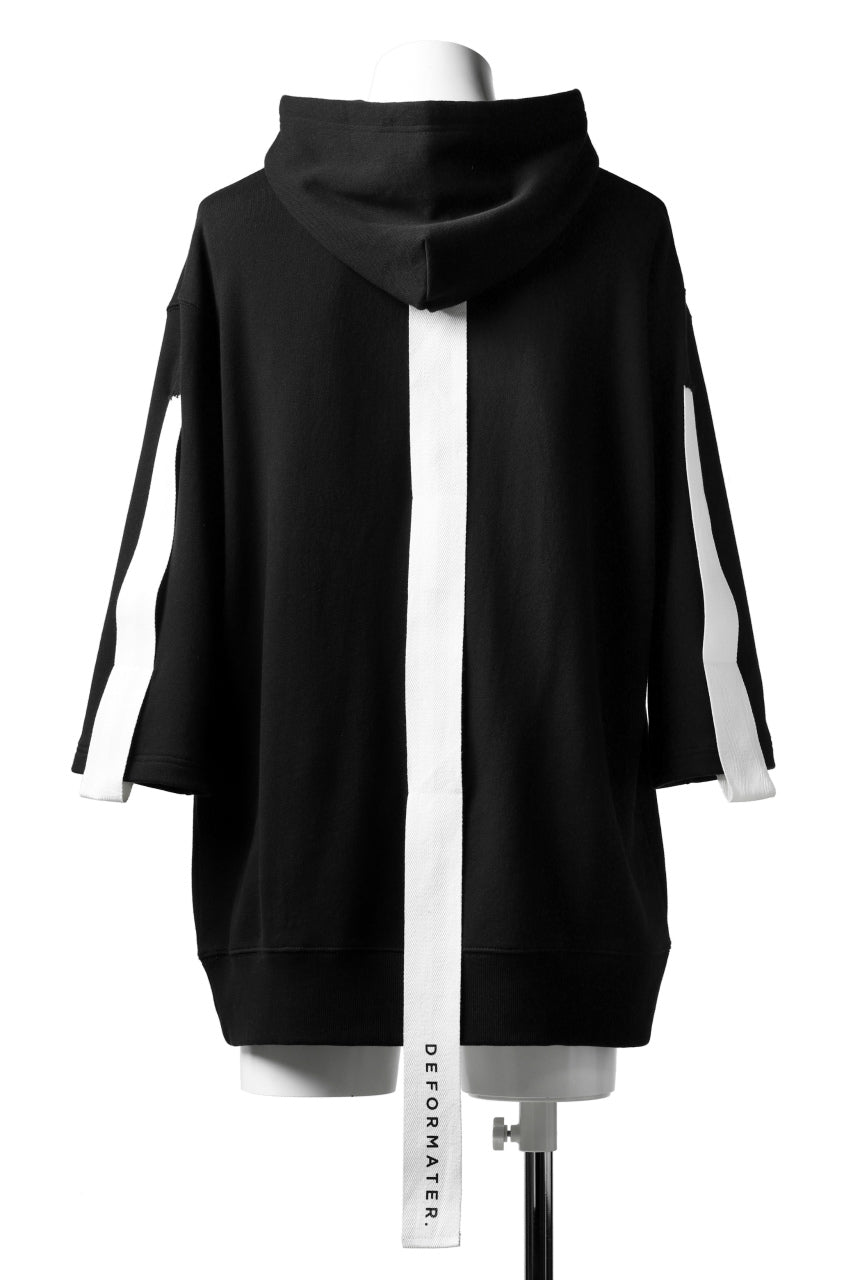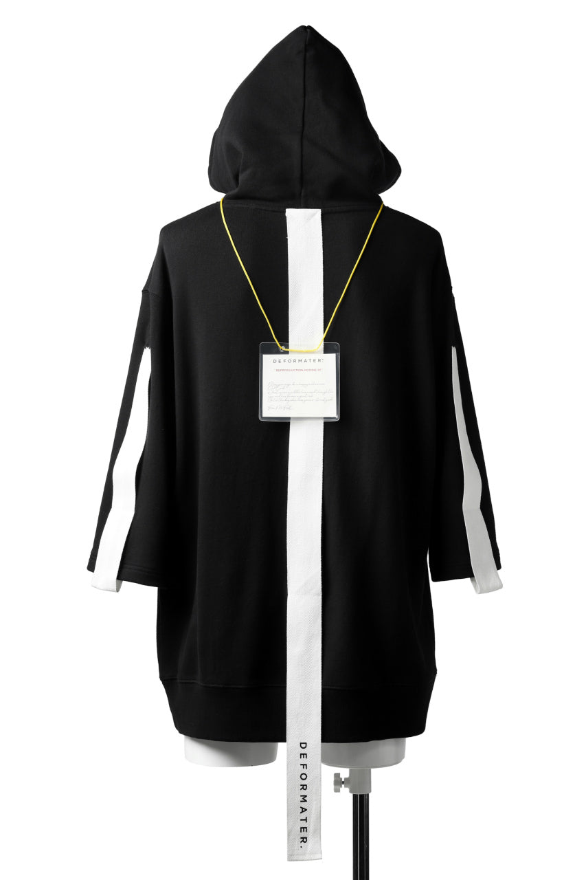 DEFORMATER.® LOGO TAPE HOODIE / LIGHT OZ COTTON (BLACK x WHITE)
