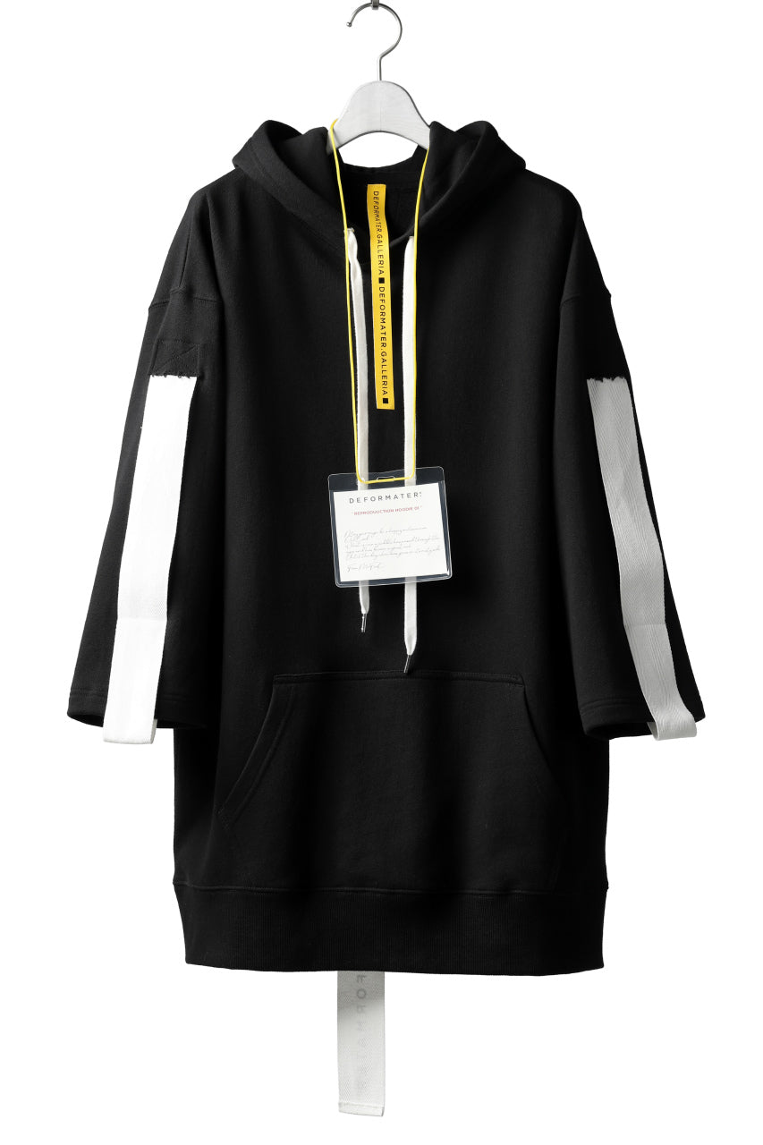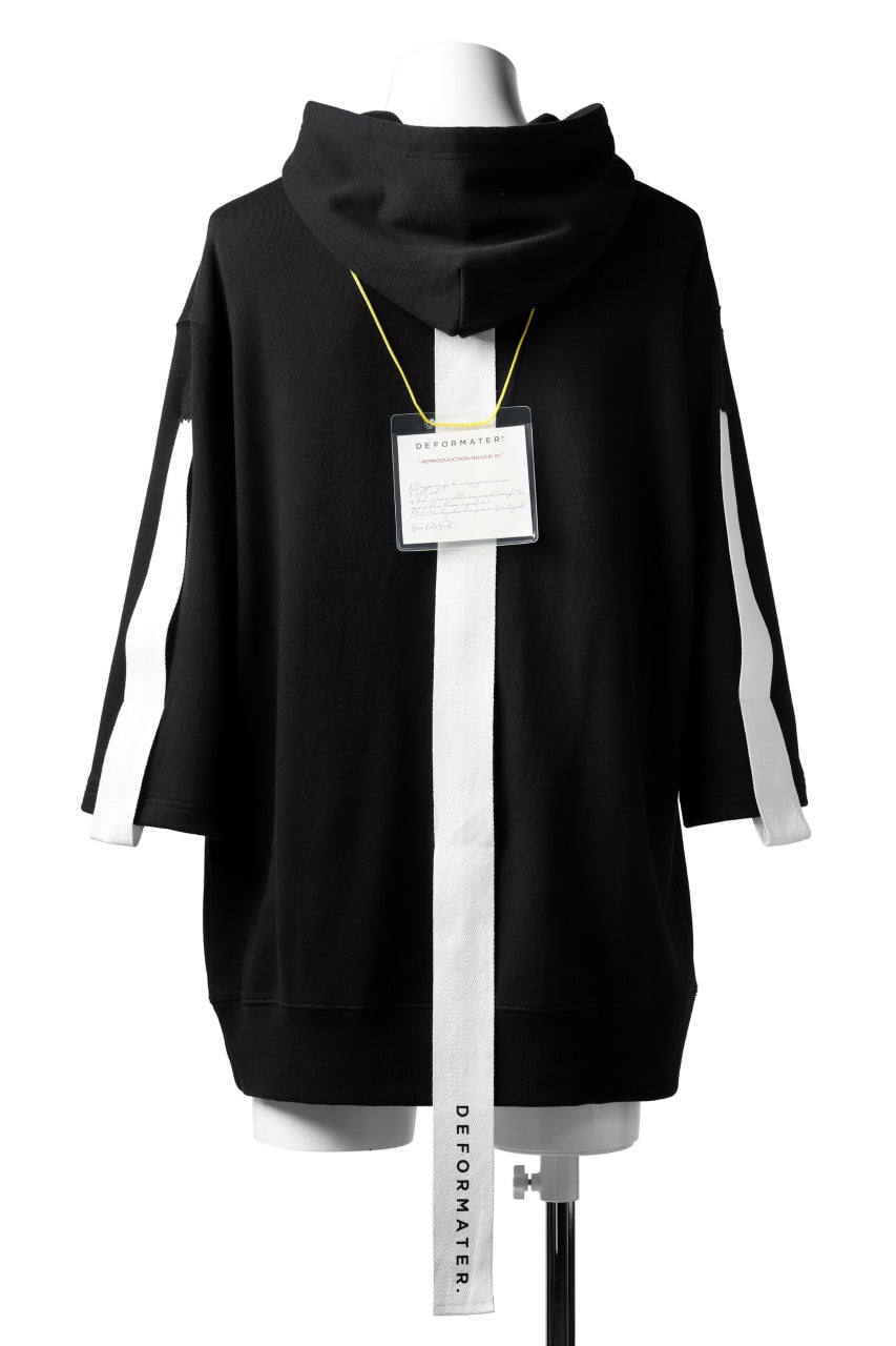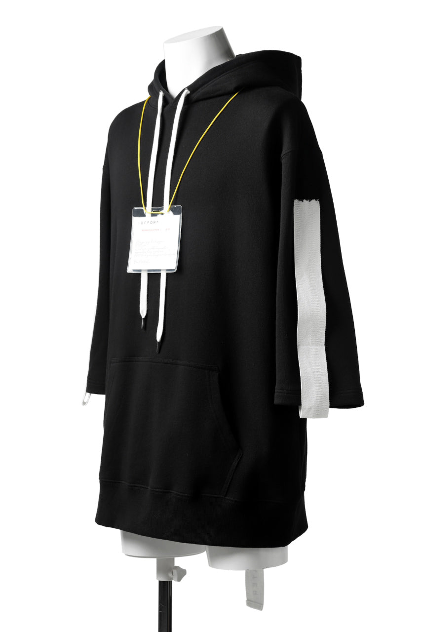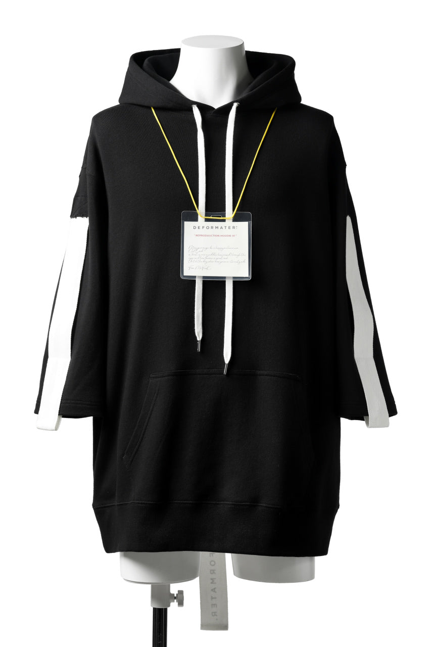 DEFORMATER.® LOGO TAPE HOODIE / LIGHT OZ COTTON (BLACK x WHITE)