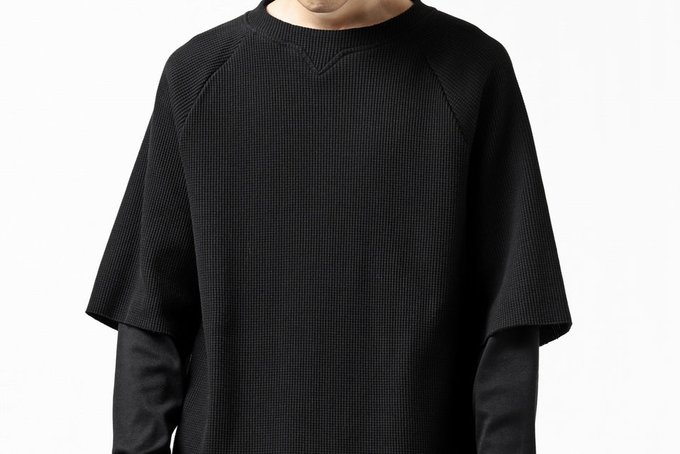 FIRST AID TO THE INJURED SJENSE LAYERED SLEEVE TOPS / WAFFEL + RIB JERSEY (BLACK)