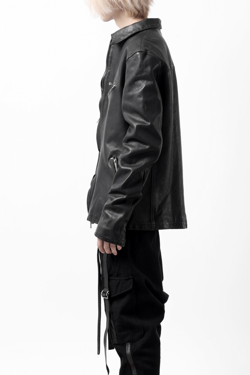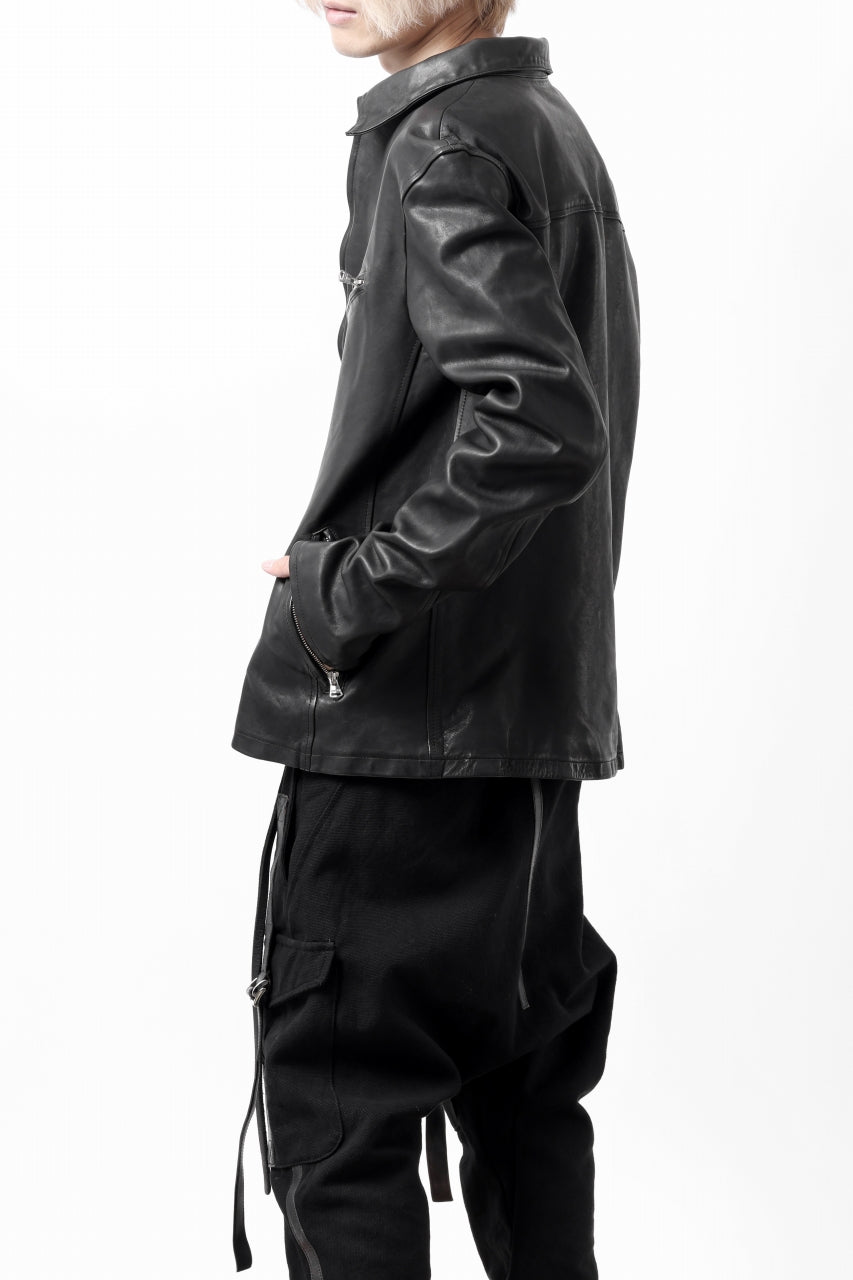 ISAMU KATAYAMA BACKLASH COLLAR ZIP JACKET / POLAND HORSE OBJECT DYED (BLACK)