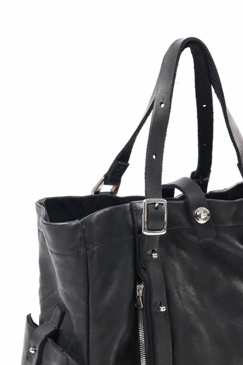 ISAMU KATAYAMA BACKLASH ZIP TOTE BAG / OBJECT DYED JAPAN ROUGH STEER (BLACK)