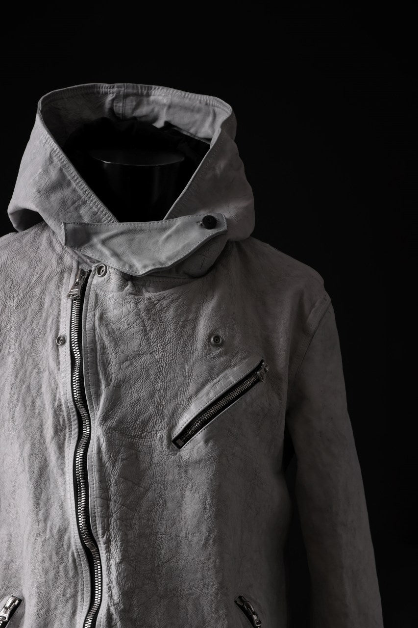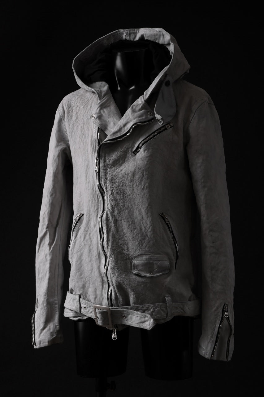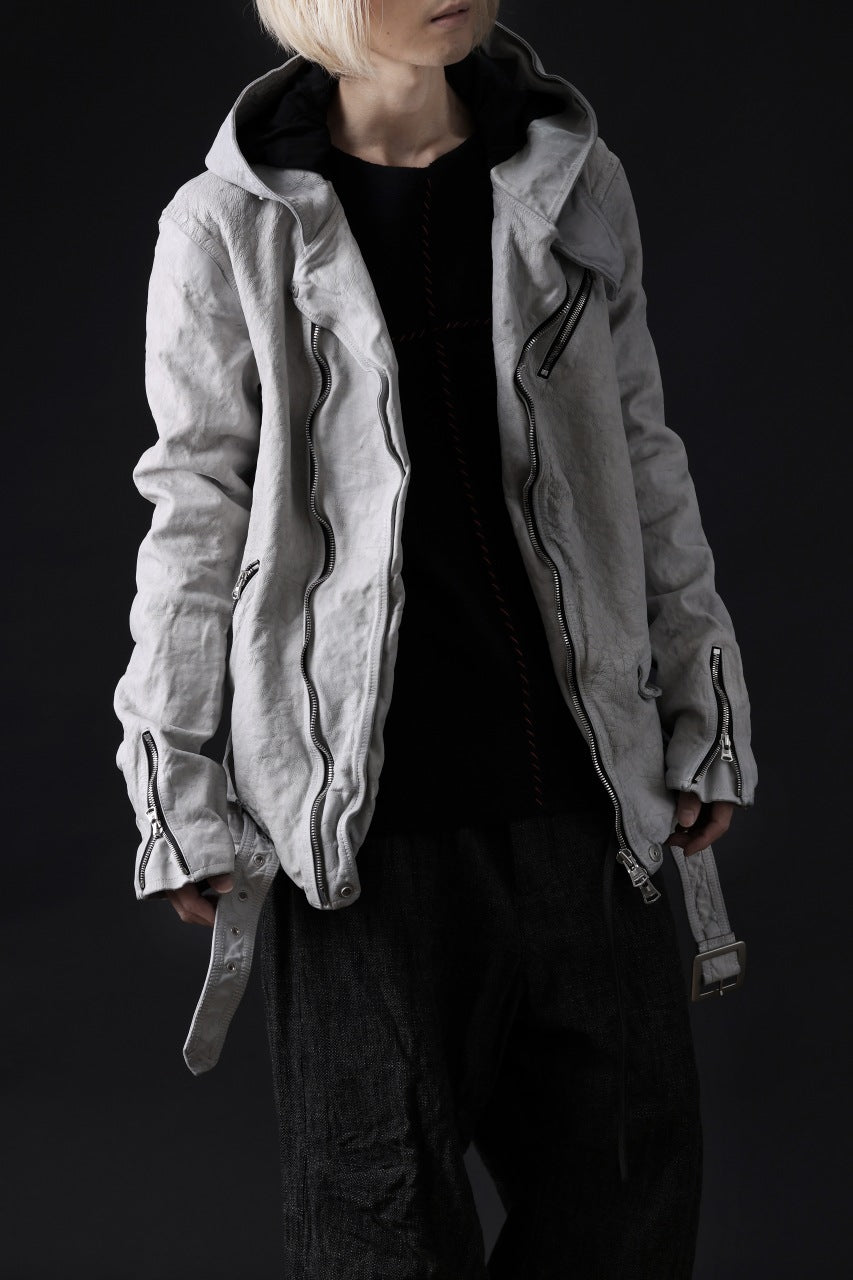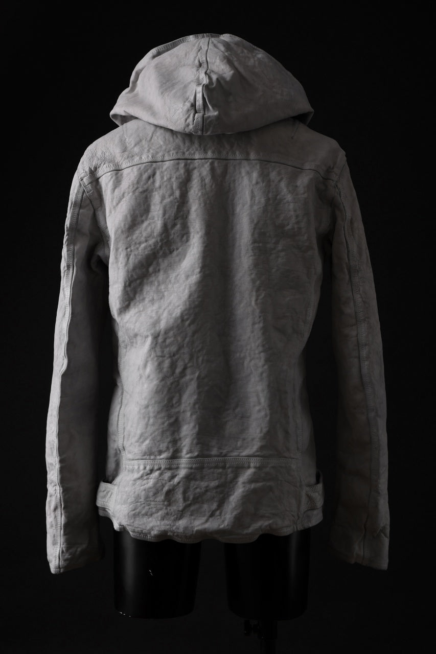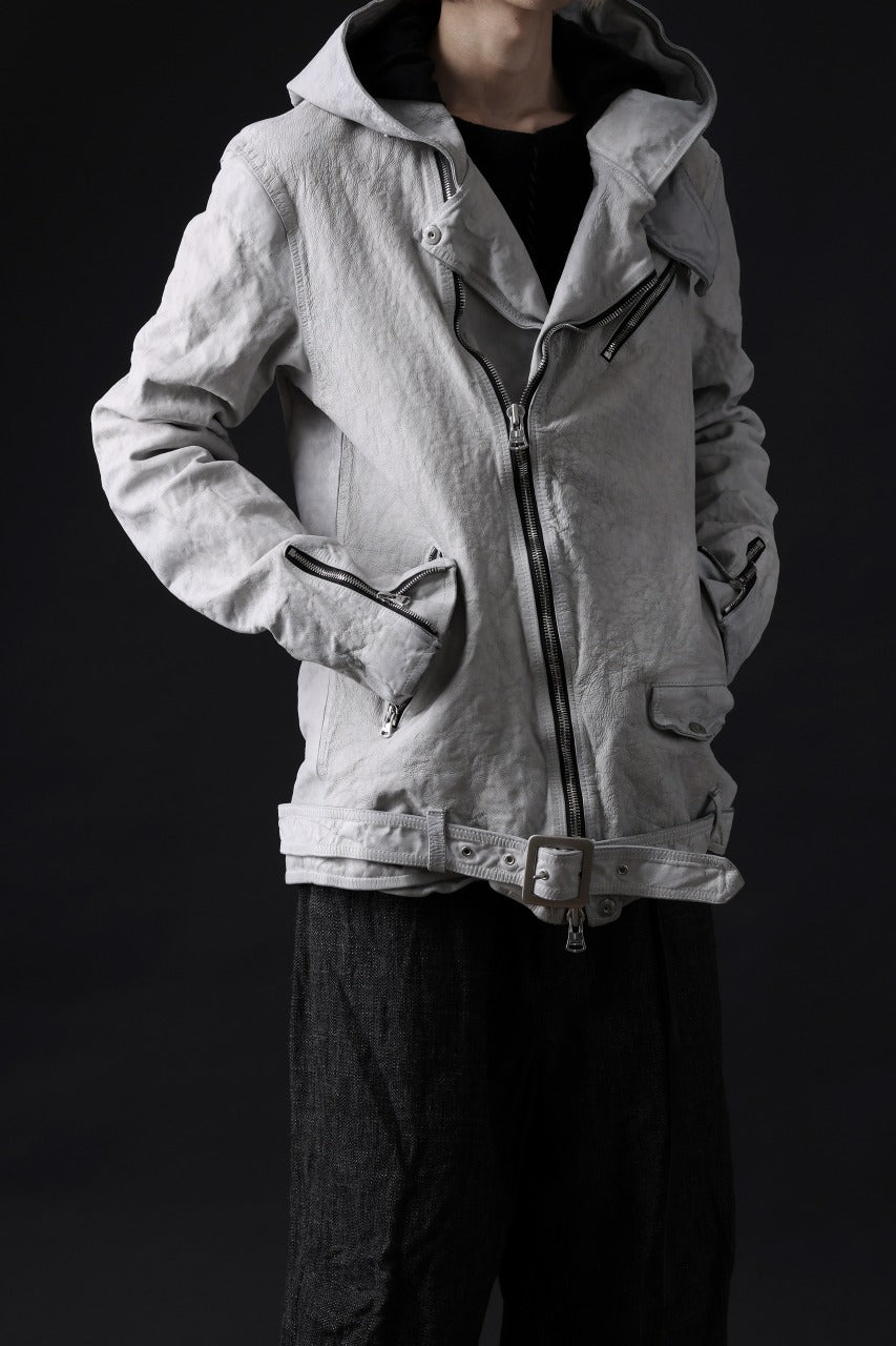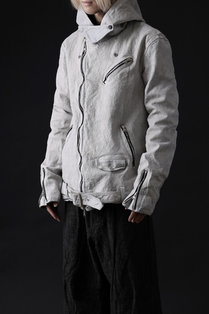 ISAMU KATAYAMA BACKLASH HOODED RIDERS JACKET / NATURAL DYED & GARMENT WASHED JP CALF (WHITE)