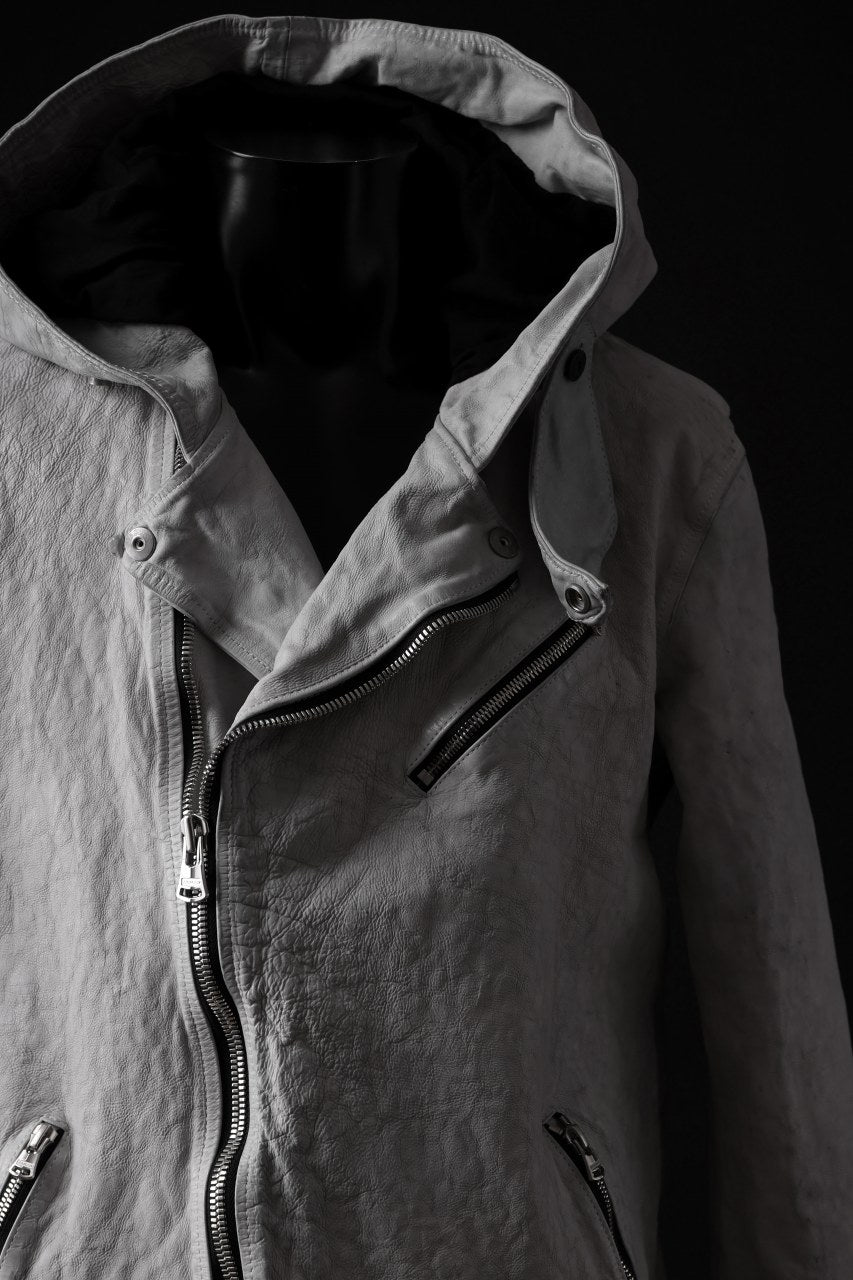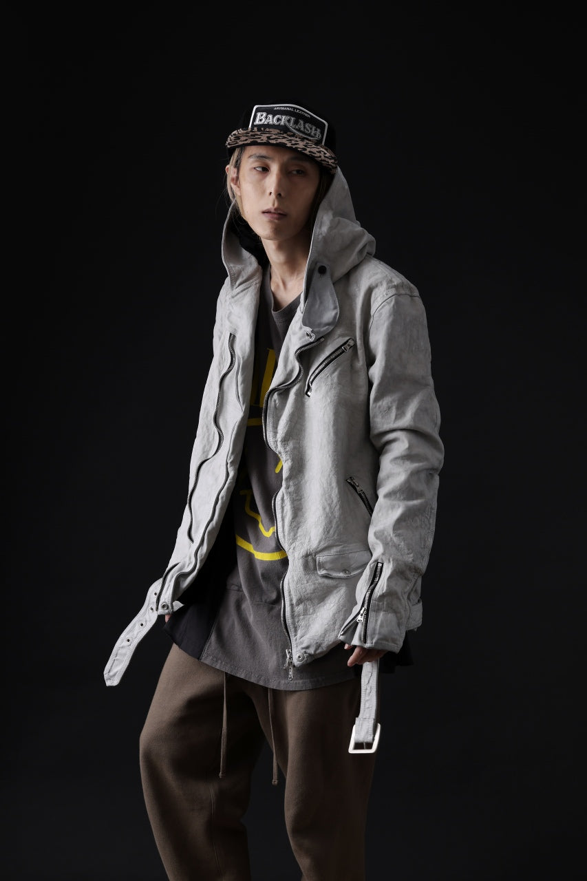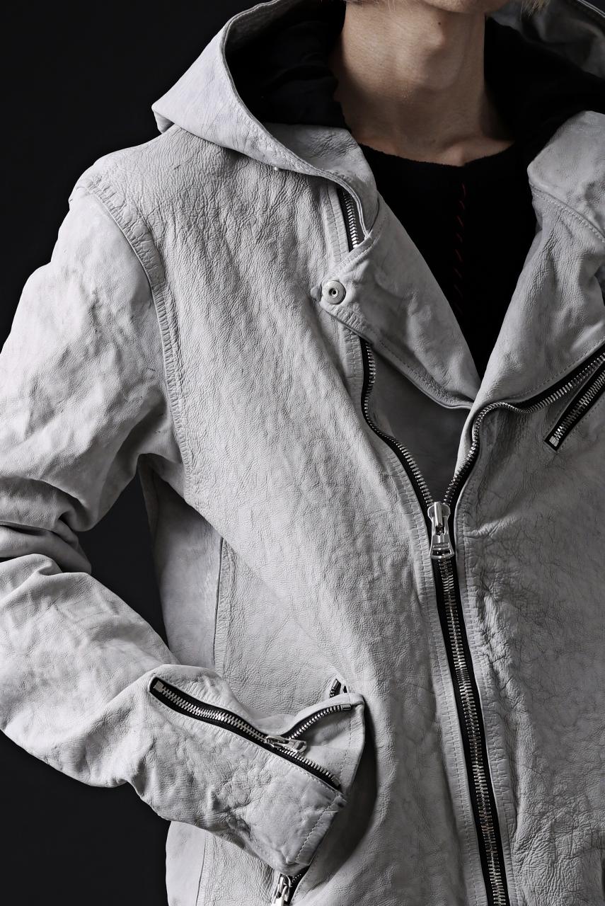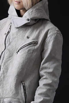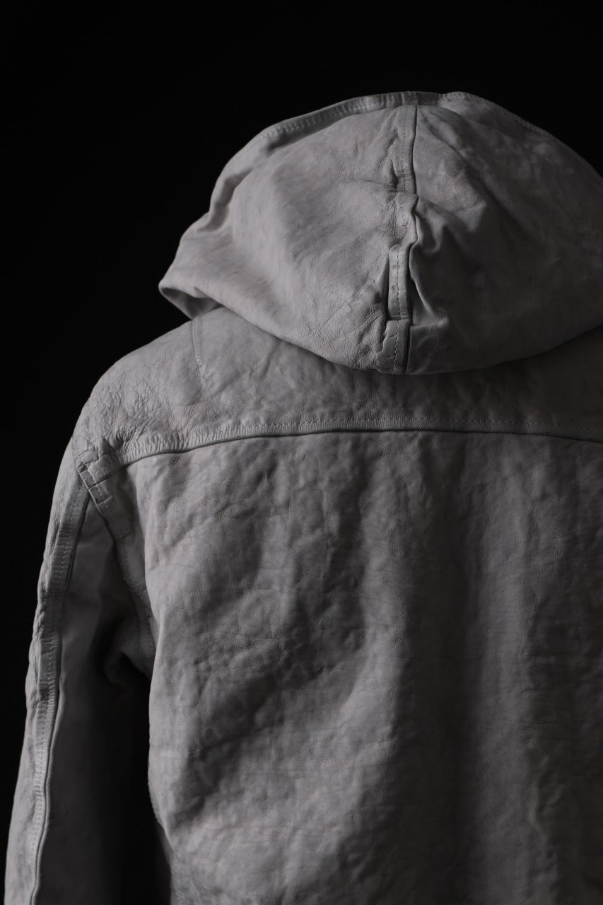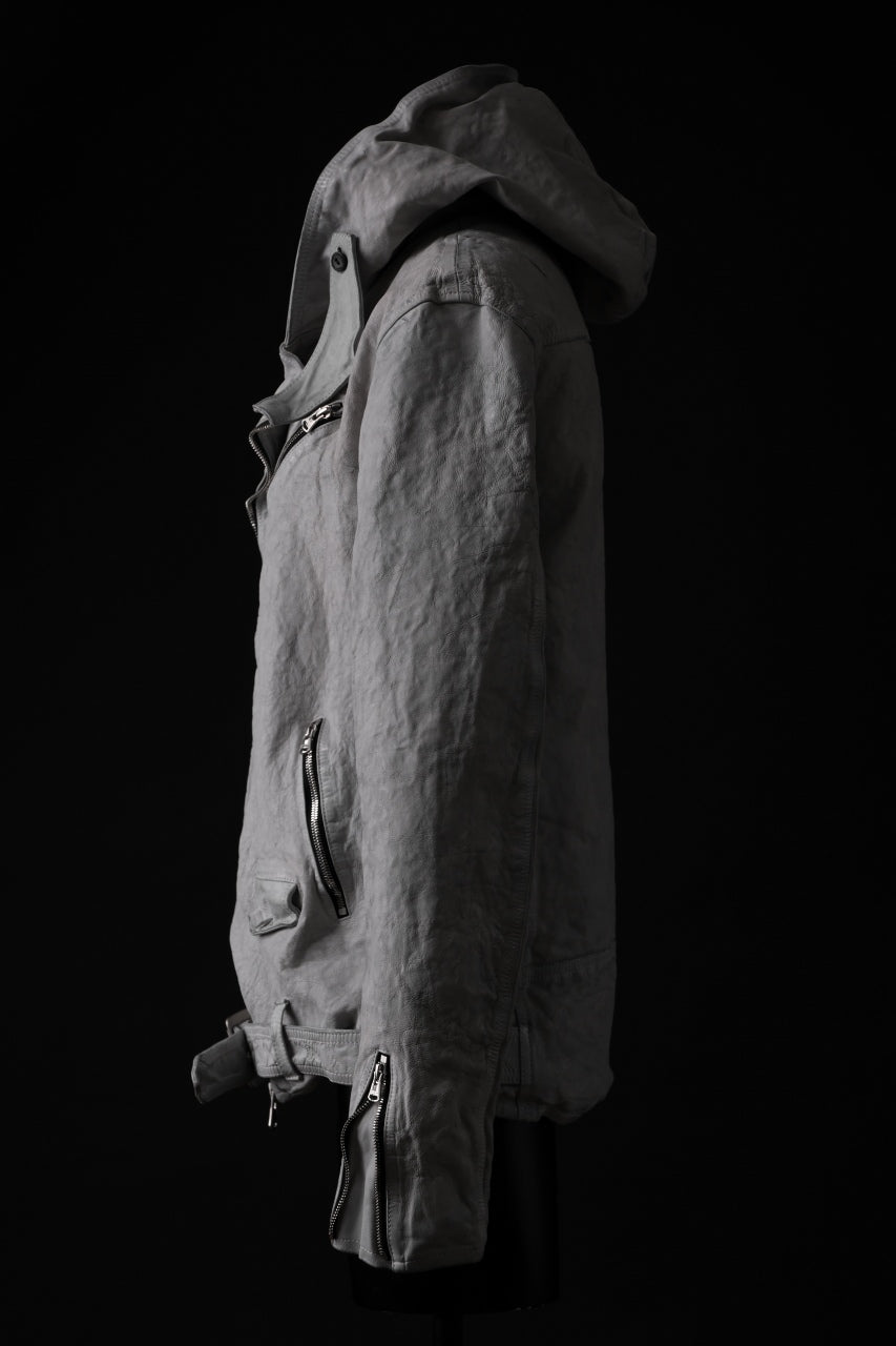 ISAMU KATAYAMA BACKLASH HOODED RIDERS JACKET / NATURAL DYED & GARMENT WASHED JP CALF (WHITE)