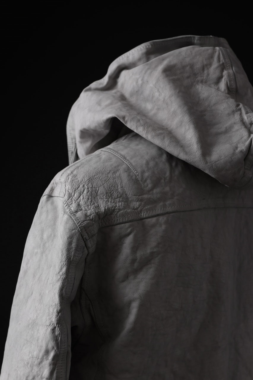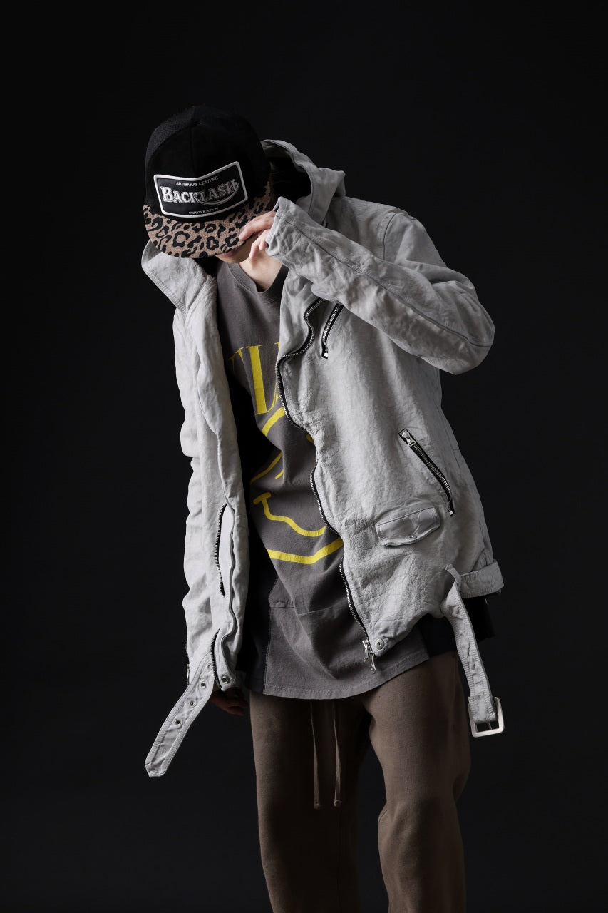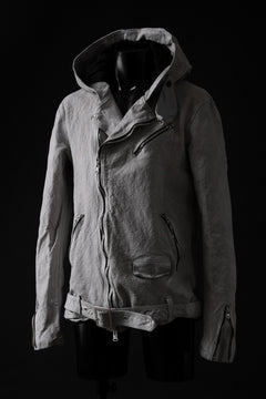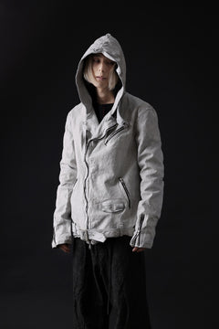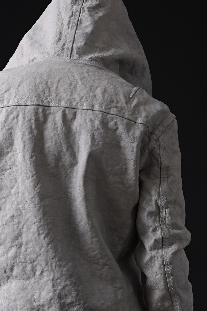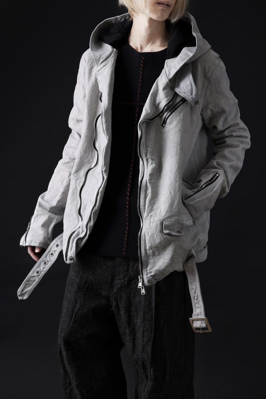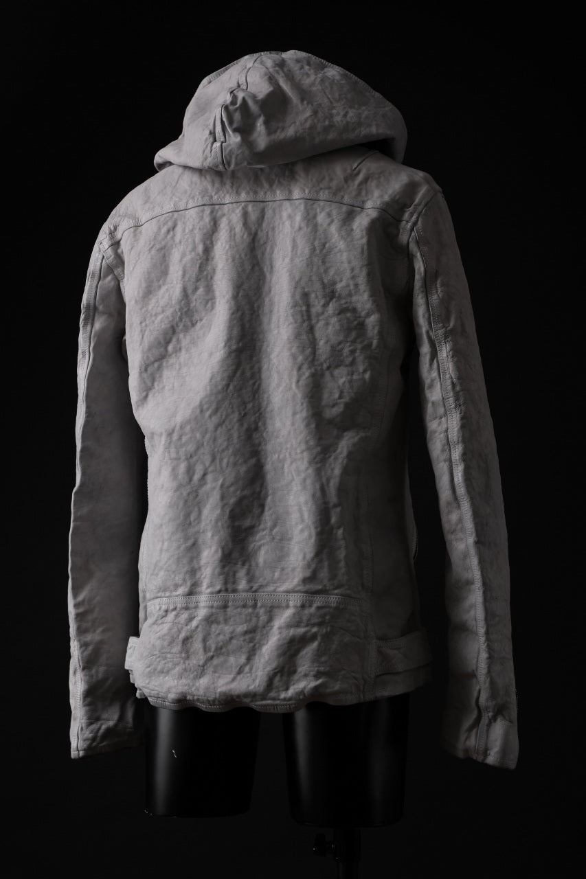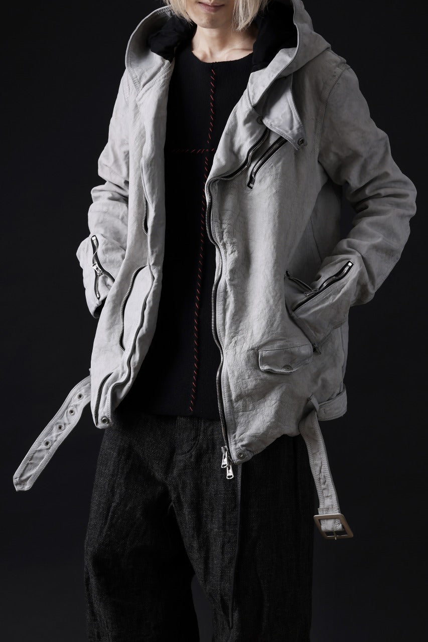 ISAMU KATAYAMA BACKLASH HOODED RIDERS JACKET / NATURAL DYED & GARMENT WASHED JP CALF (WHITE)