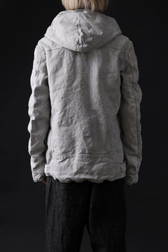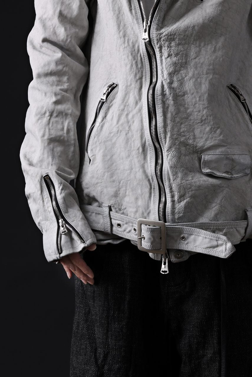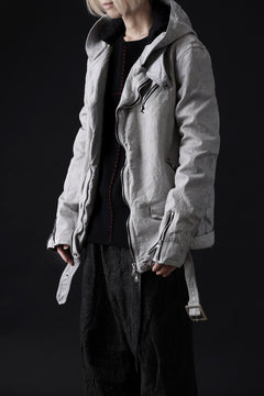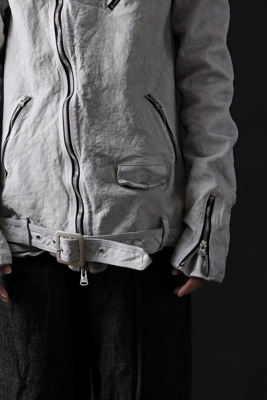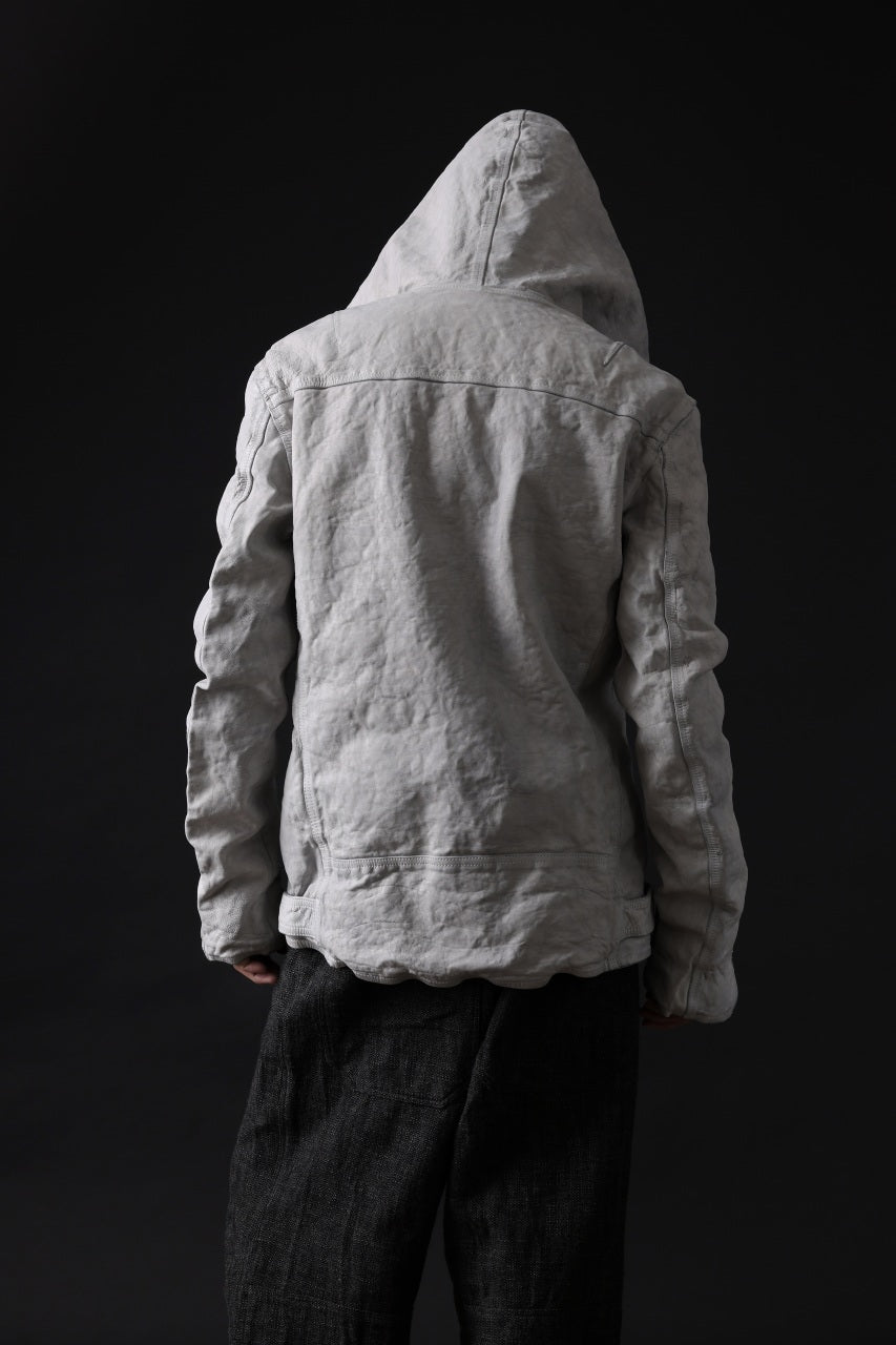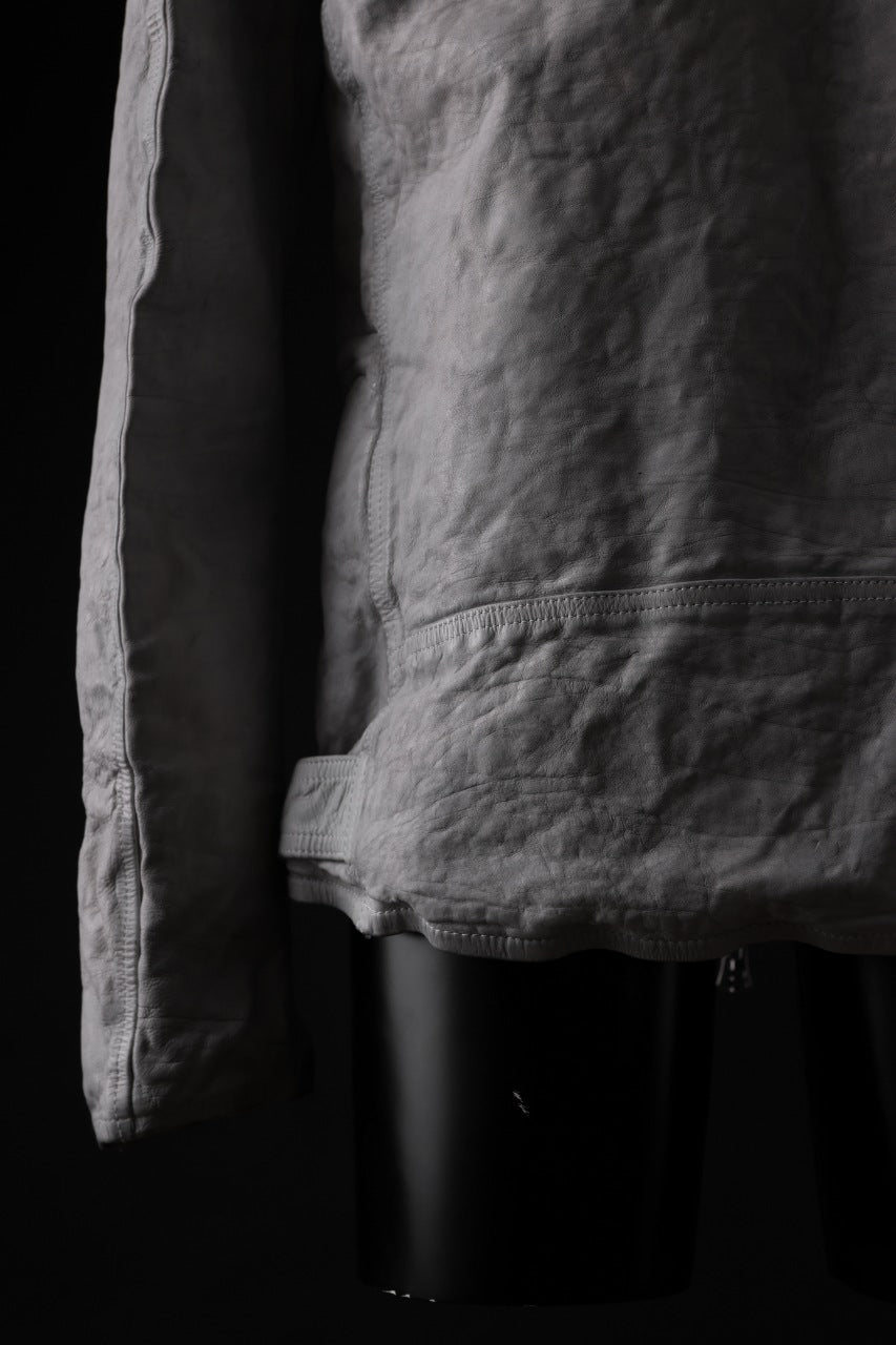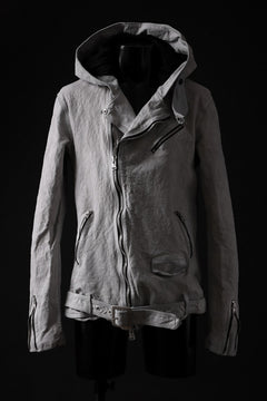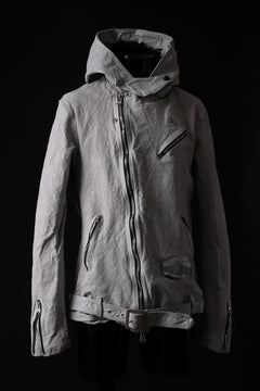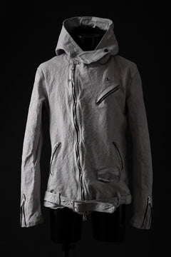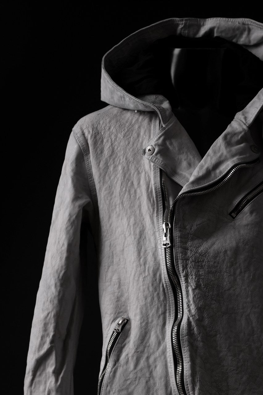 ISAMU KATAYAMA BACKLASH HOODED RIDERS JACKET / NATURAL DYED & GARMENT WASHED JP CALF (WHITE)