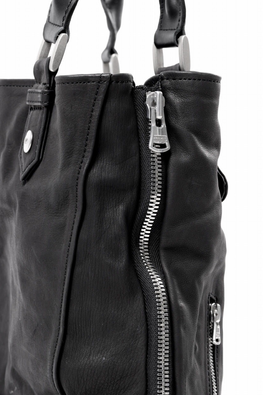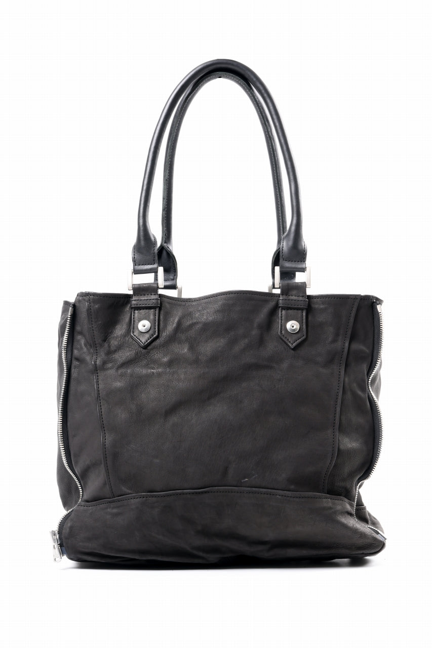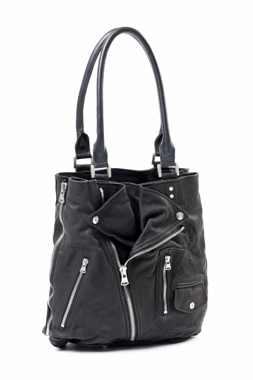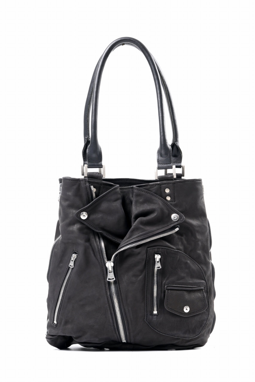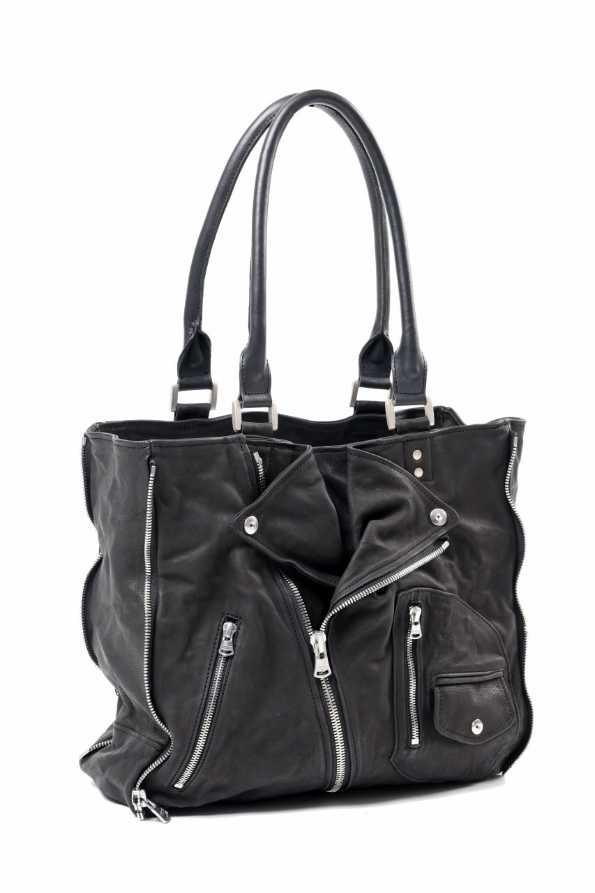 ISAMU KATAYAMA BACKLASH JAPAN CALF GARMENT-WASH RIDERS TOTE BAG (BLACK)