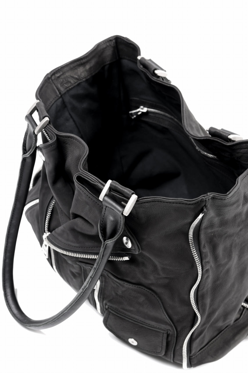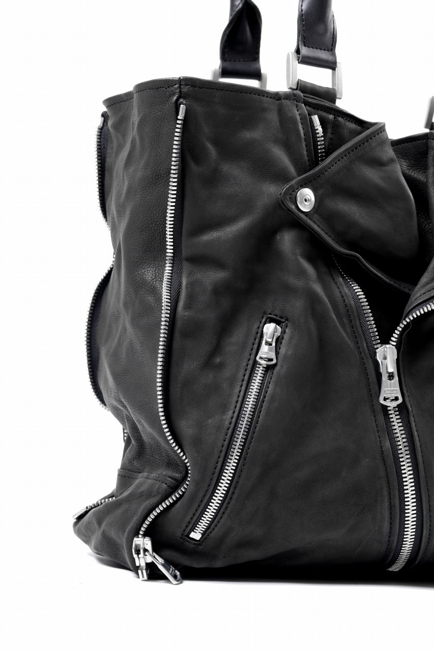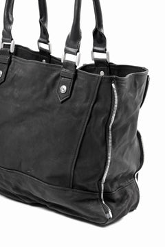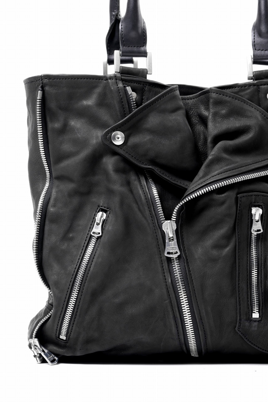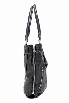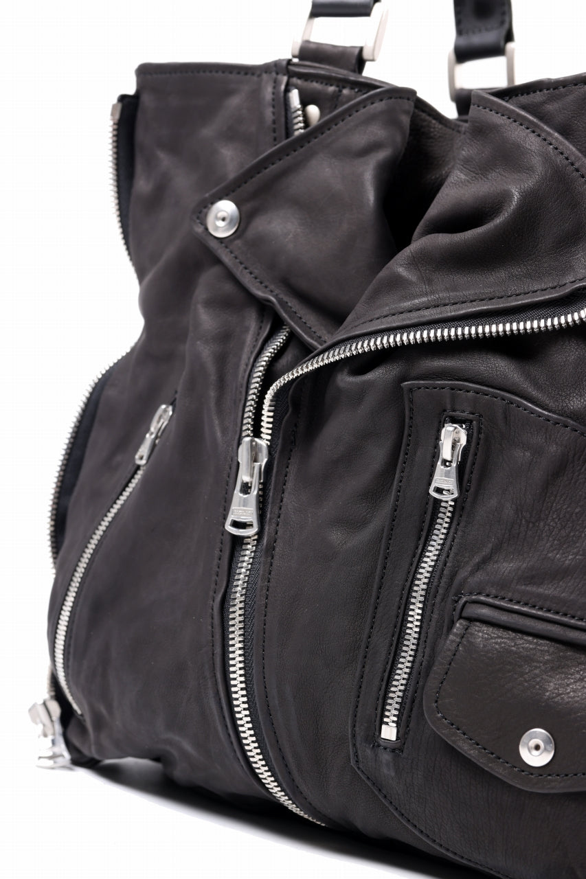 ISAMU KATAYAMA BACKLASH JAPAN CALF GARMENT-WASH RIDERS TOTE BAG (BLACK)