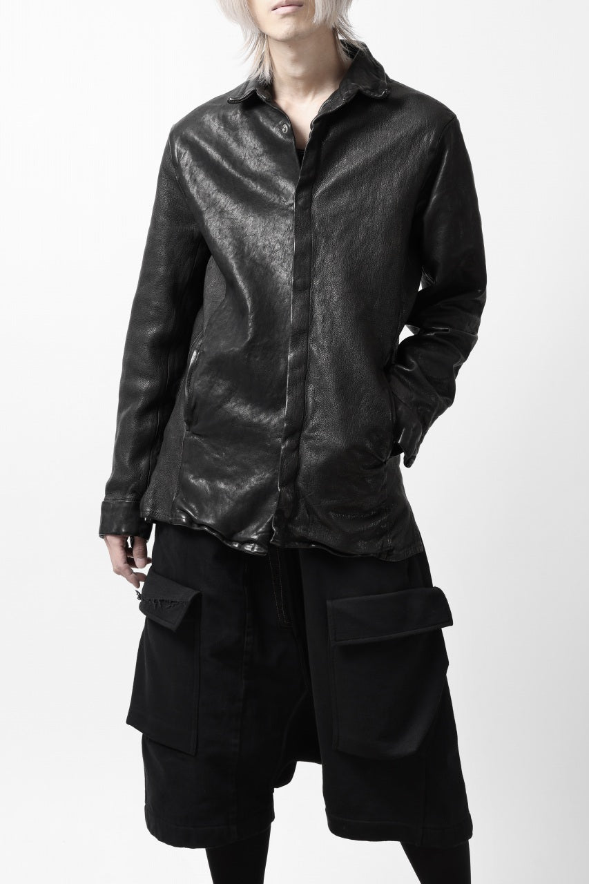 ISAMU KATAYAMA BACKLASH MARYAM LEATHER SHIRT JACKET / GARMENT DYED - ITALY DEER SKIN (BLACK)
