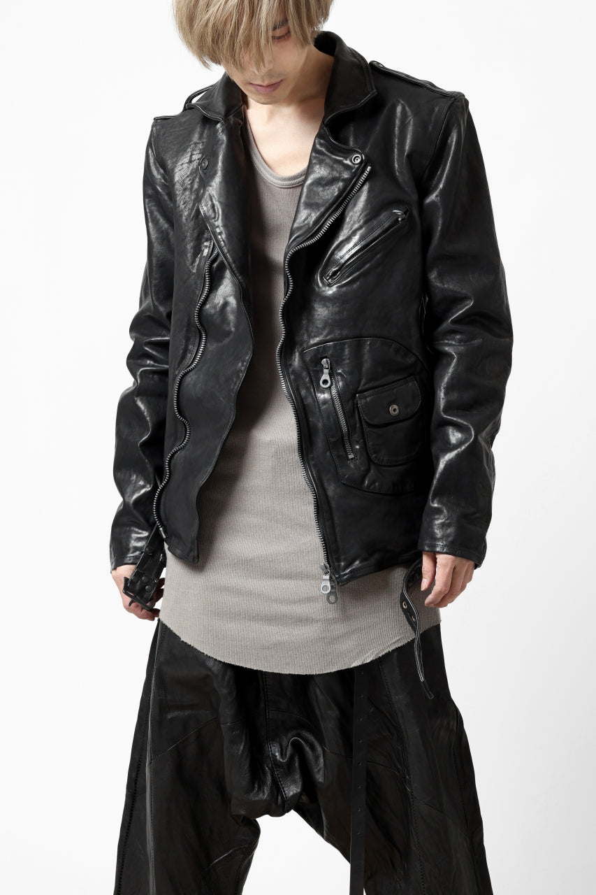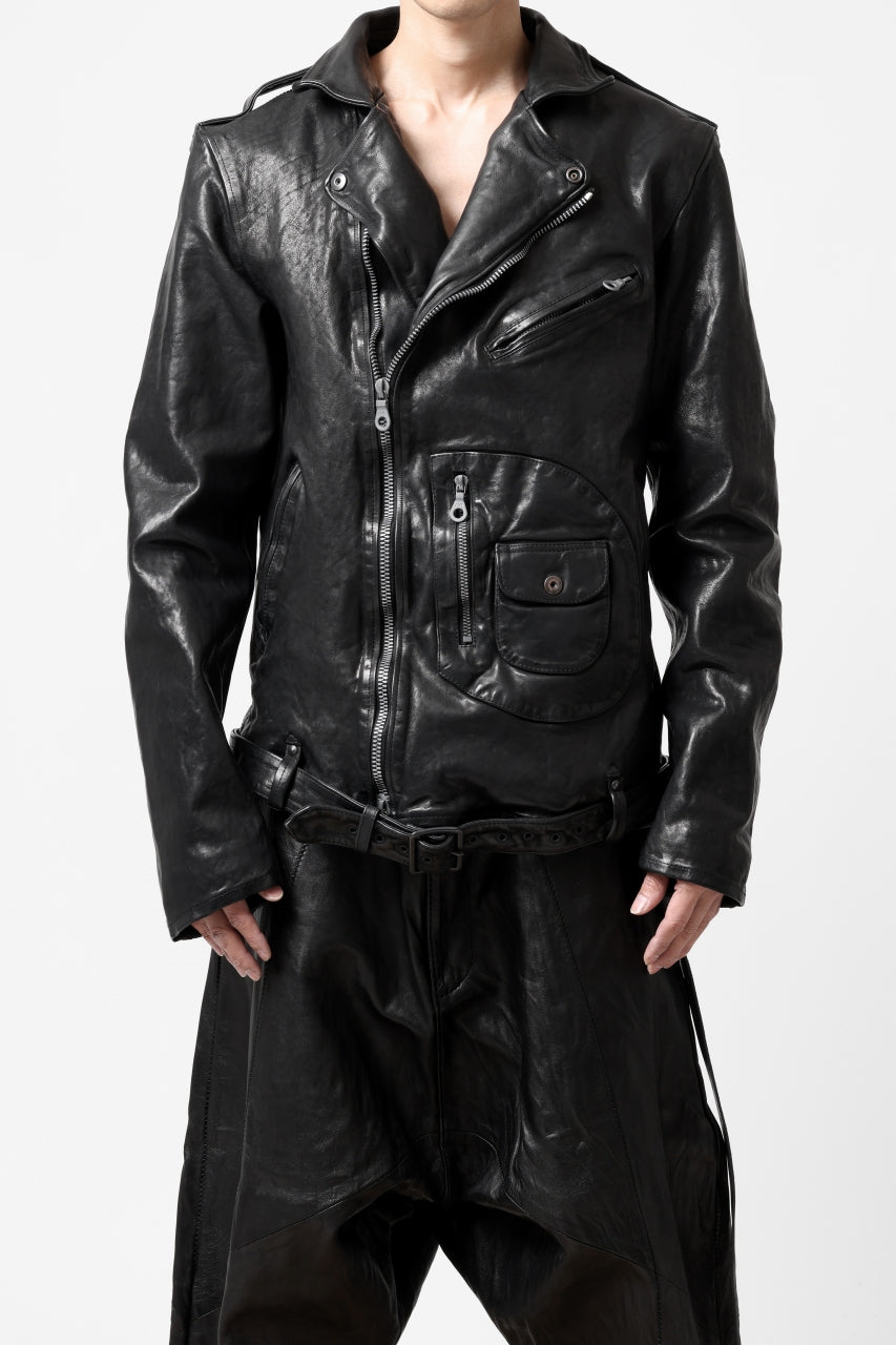 ISAMU KATAYAMA BACKLASH MOTO JACKET / ITALY-SHOULDER OBJECT DYED (BLACK)