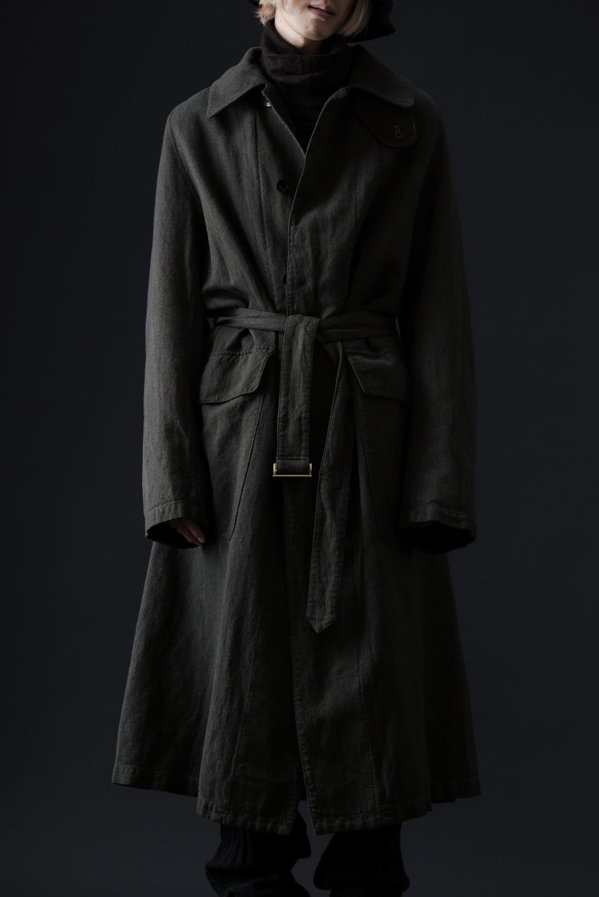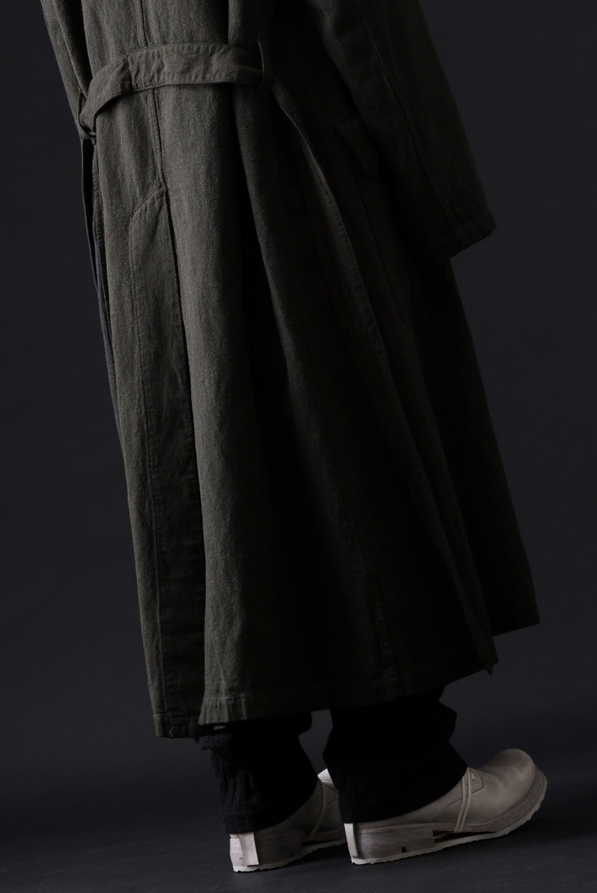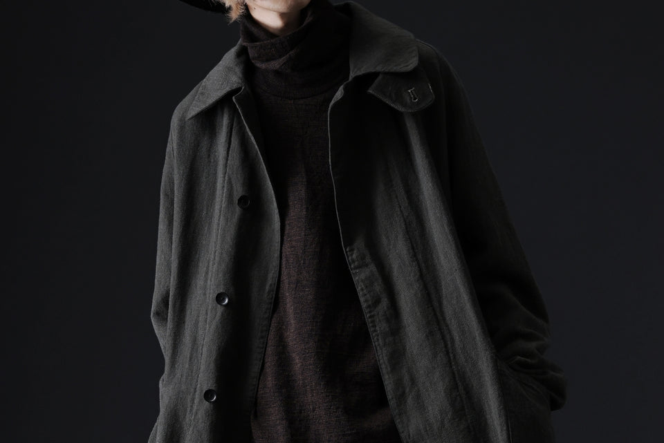 ISAMU KATAYAMA BACKLASH OVER COAT / GARMENT NATURAL DYED WOVEN + ELECTRIC HEATING LINER (LEAF)