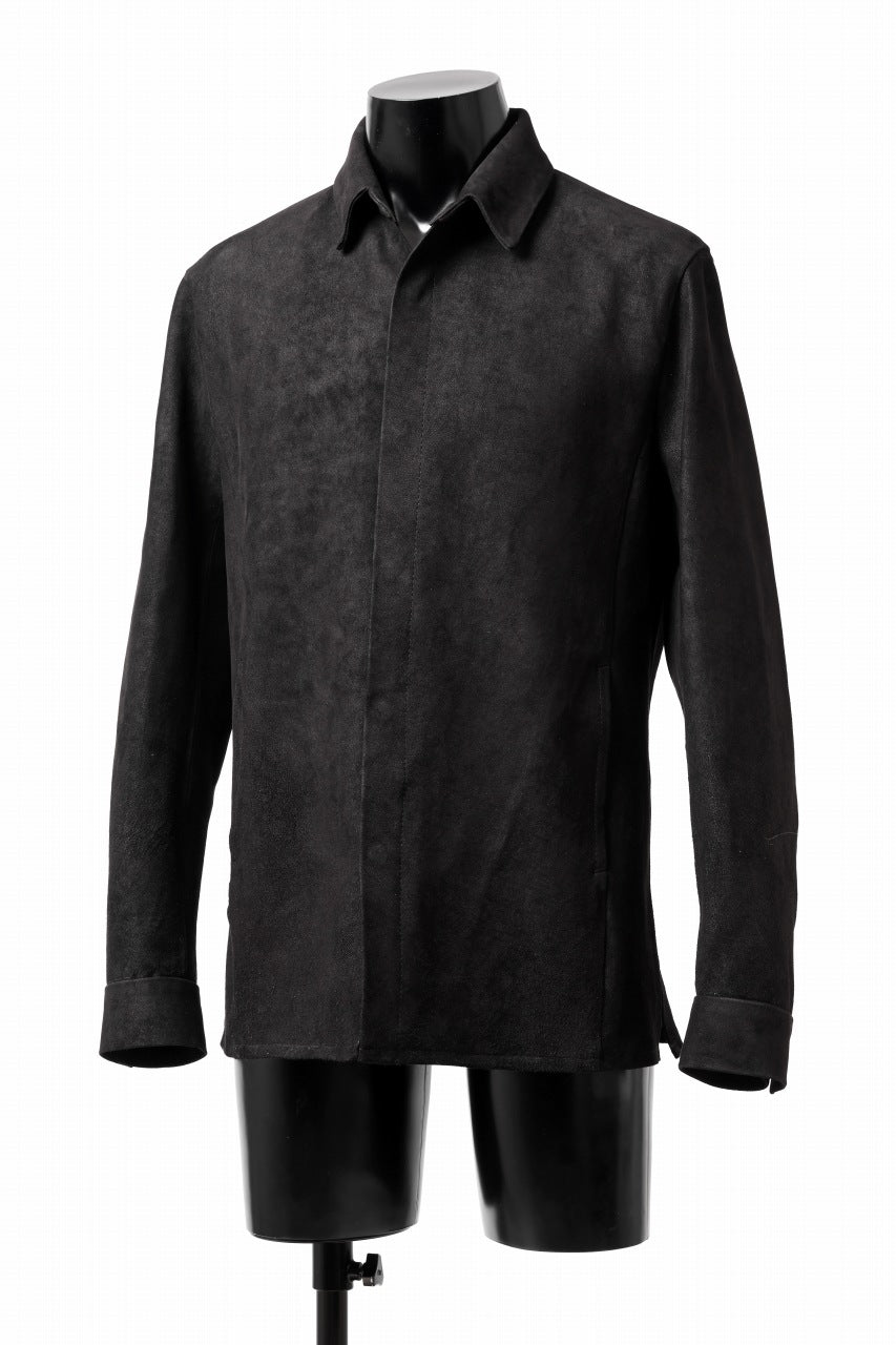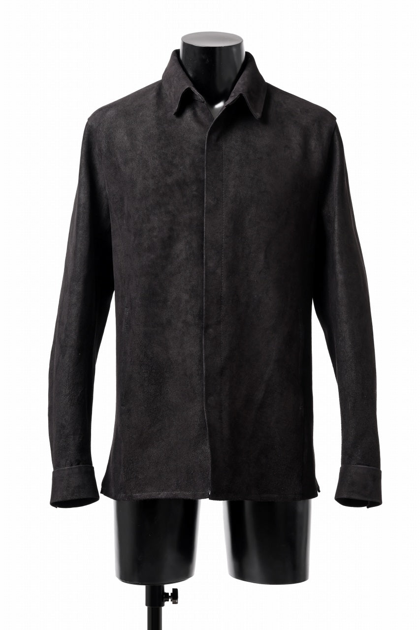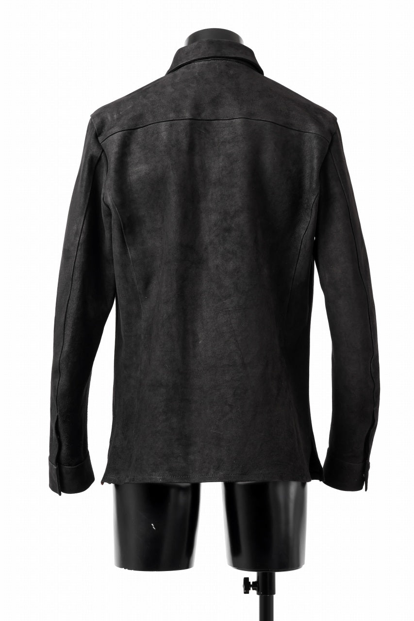 ISAMU KATAYAMA BACKLASH REVERSE LEATHER SHIRT / DOUBLE DYED - JP WET WHITE CALF (BLACK)
