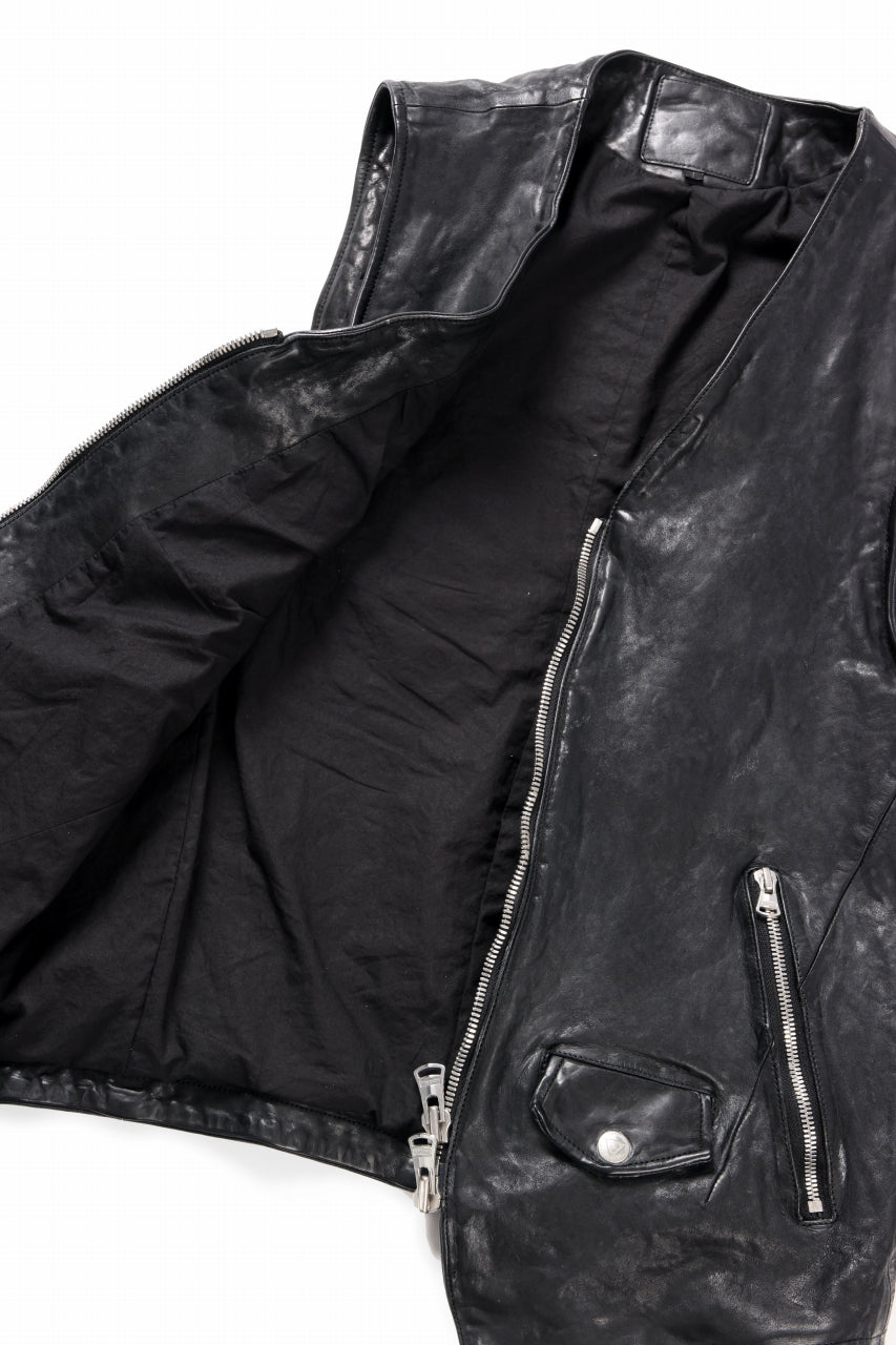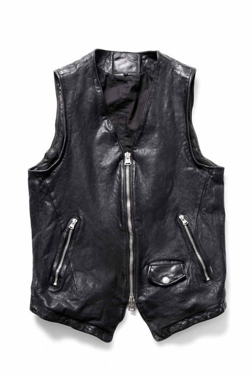 ISAMU KATAYAMA BACKLASH SHOULDER FRENCH SHOULDER GARMENT-DYED ZIPPER VEST (BLACK)
