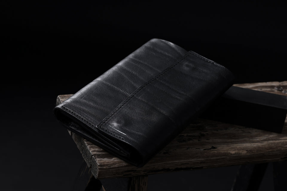 ISAMU KATAYAMA BACKLASH TRI-FOLD SHORT WALLET / ITALY DOUBLE SHOULDER (BLACK)