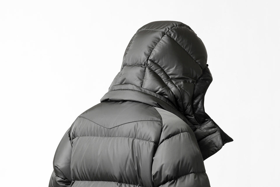 ISAMU KATAYAMA BACKLASH xx NANGA REVERSIBLE MOUNTAIN BELAY COAT / KANGAROO + NYLON x POLISH WHITE GOOSE (BLACK x GREY)