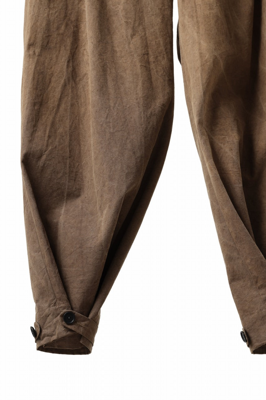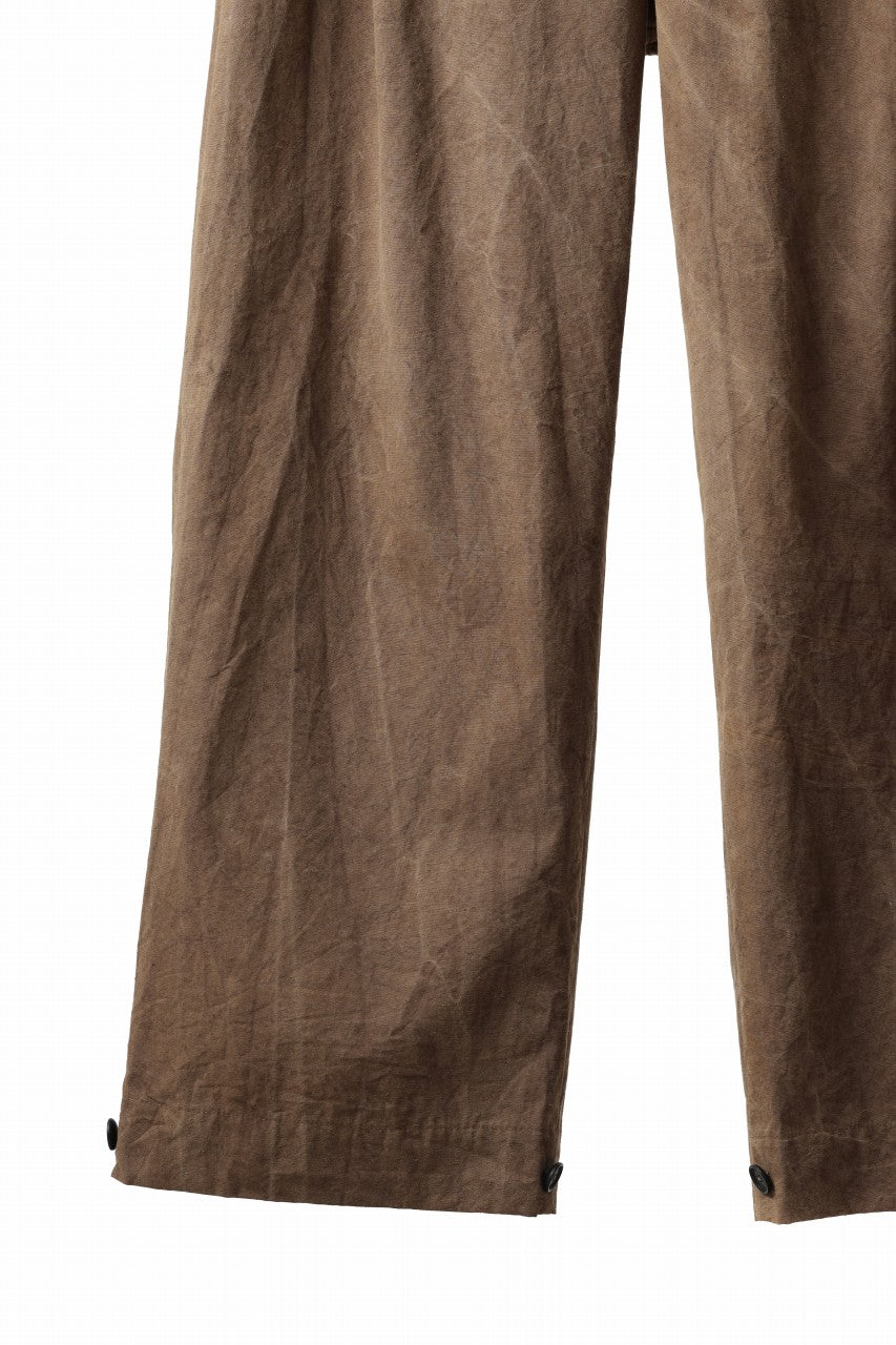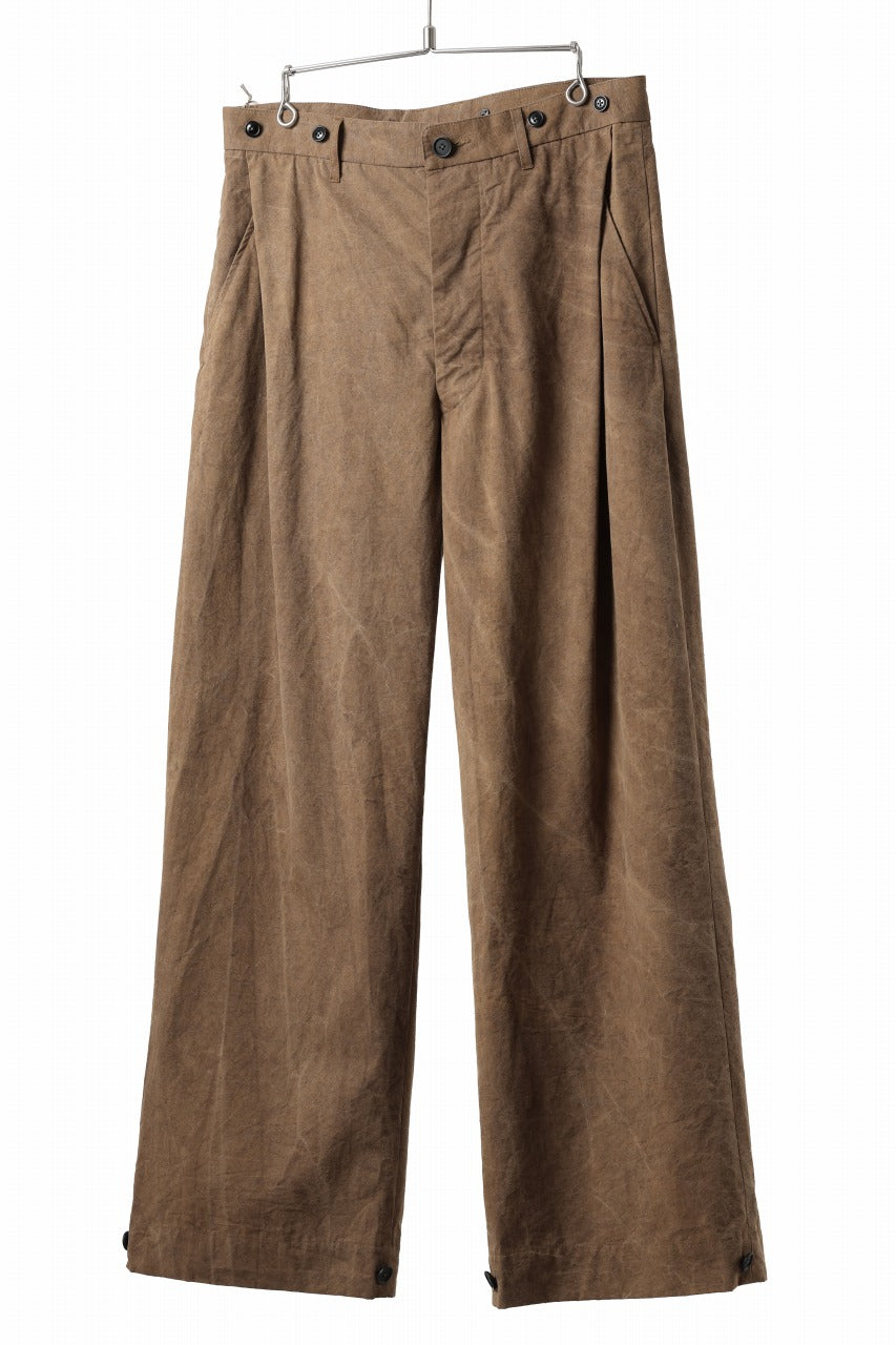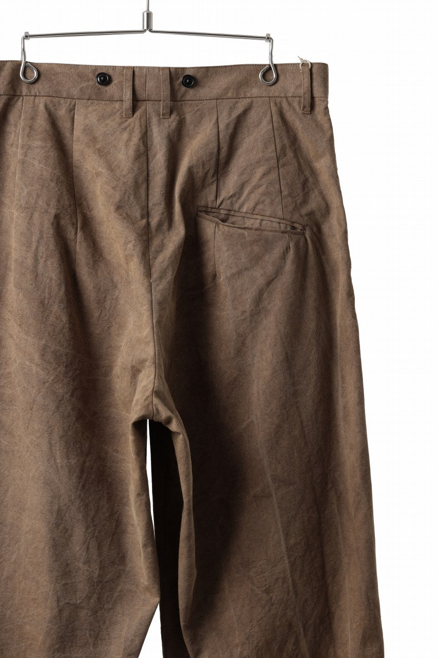 KLASICA LINDBERGH (ND ver.) SIDE TUCKED WIDE STRAIGHT TROUSERS / NATURAL DYED COTTON x SILK WEATHER (KAKI BROWN)