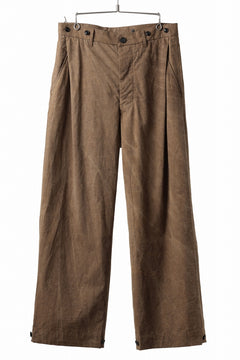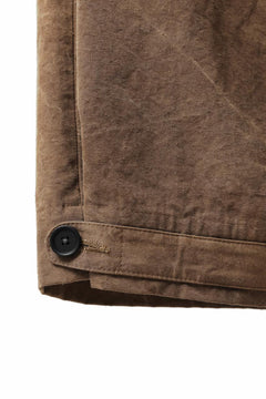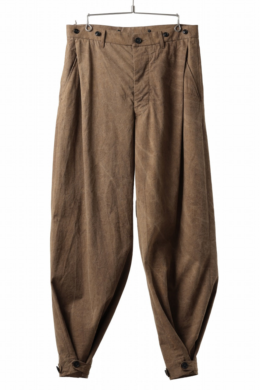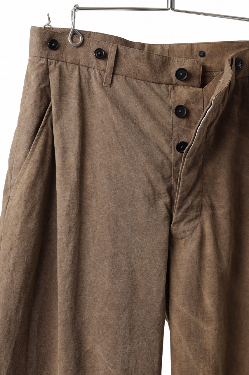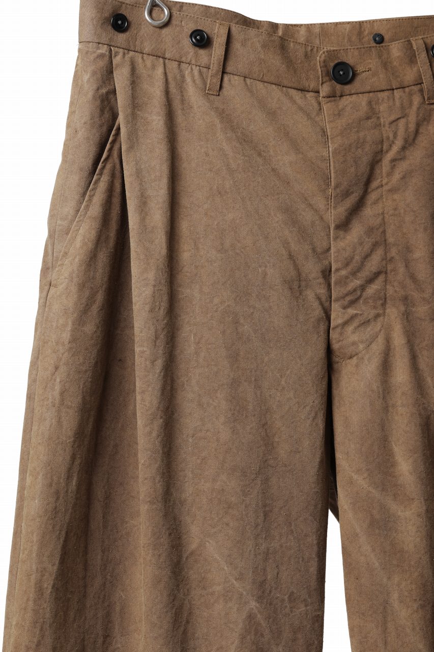 KLASICA LINDBERGH (ND ver.) SIDE TUCKED WIDE STRAIGHT TROUSERS / NATURAL DYED COTTON x SILK WEATHER (KAKI BROWN)