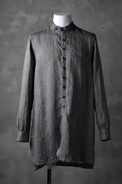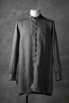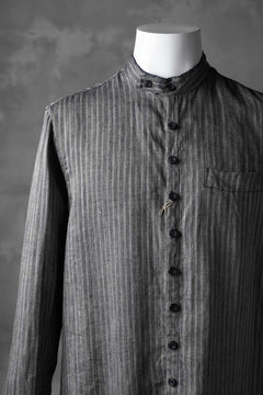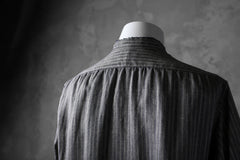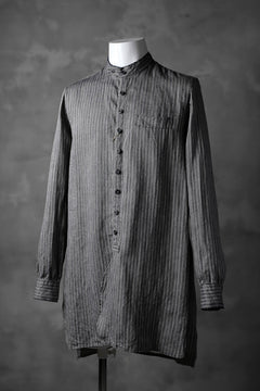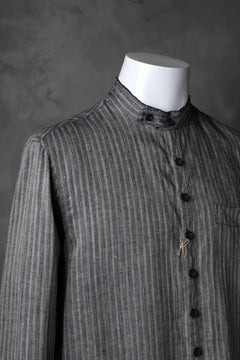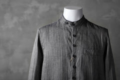 クラシカル、エレガントな様相を呈する、スタンド・カラーのデザイン・シャツです。