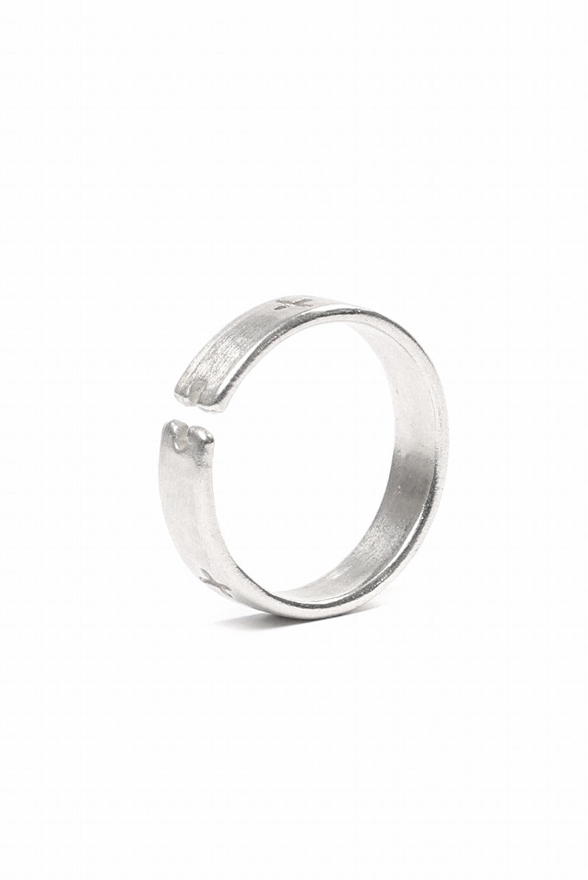 ・A silver ring with the brand icon "+" engraved like a stitch.