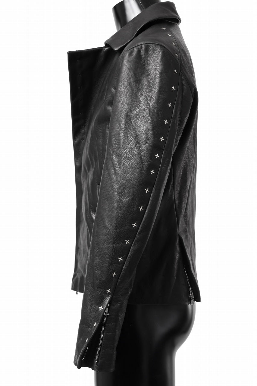 m.a+ silver crosses sleeve diagonal zip biker jacket / J1/S+/SY1.0 (BLACK)