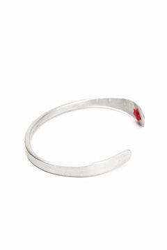 ・Silver bangle with brand icon "+" in symbolic red stitching