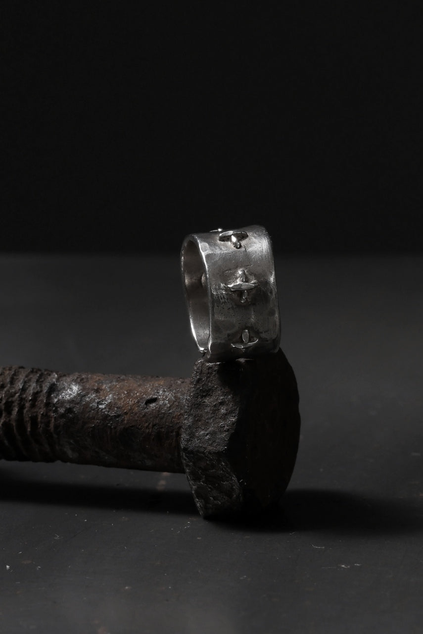 m.a+ thick silver stitched multiple cross ring / AG538/AG (SILVER)