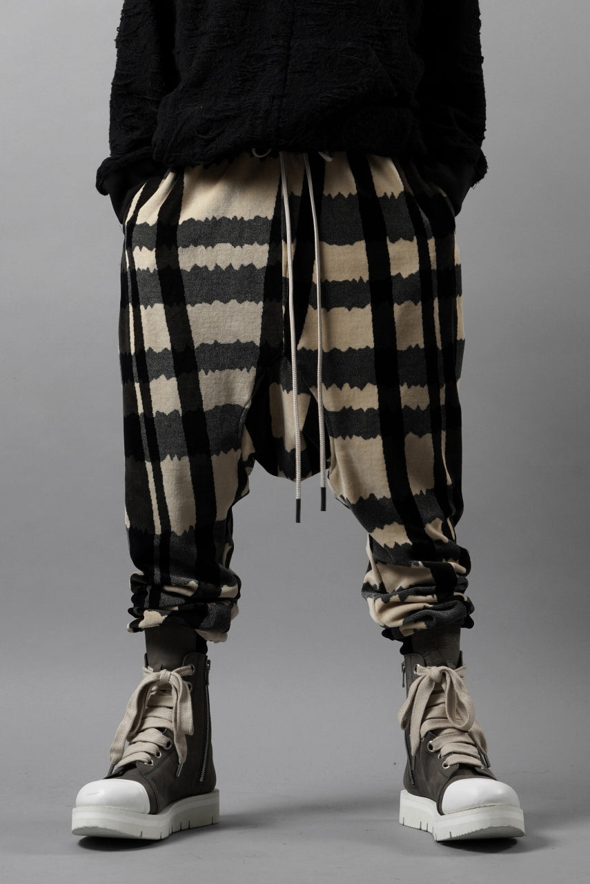 A.F ARTEFACT SAROUEL JOGGER PANTS / JACQUARD DEFORMED PLAID VELOR (BLACK x GREY x IVORY)