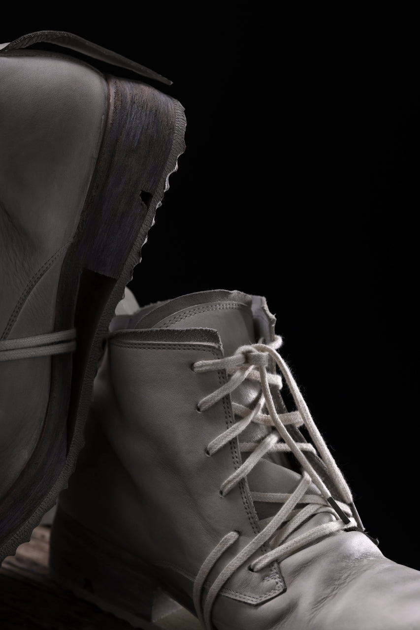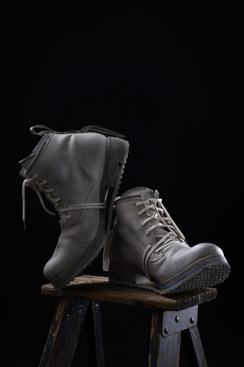 BORIS BIDJAN SABERI HORSE LEATHER LACE UP MIDDLE BOOTS / WASHED & HAND-TREATED "BOOT4" (LIGHT GREY)