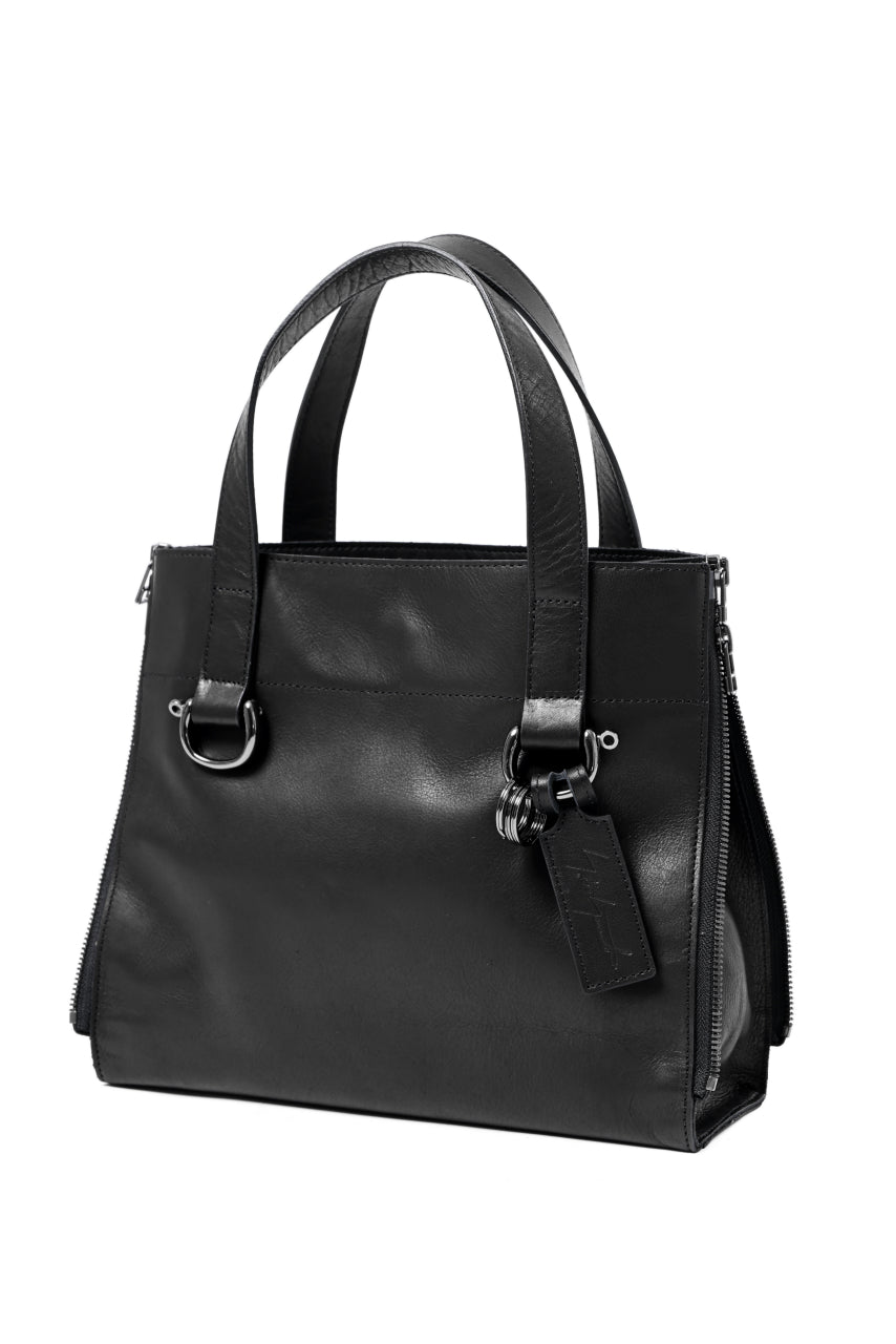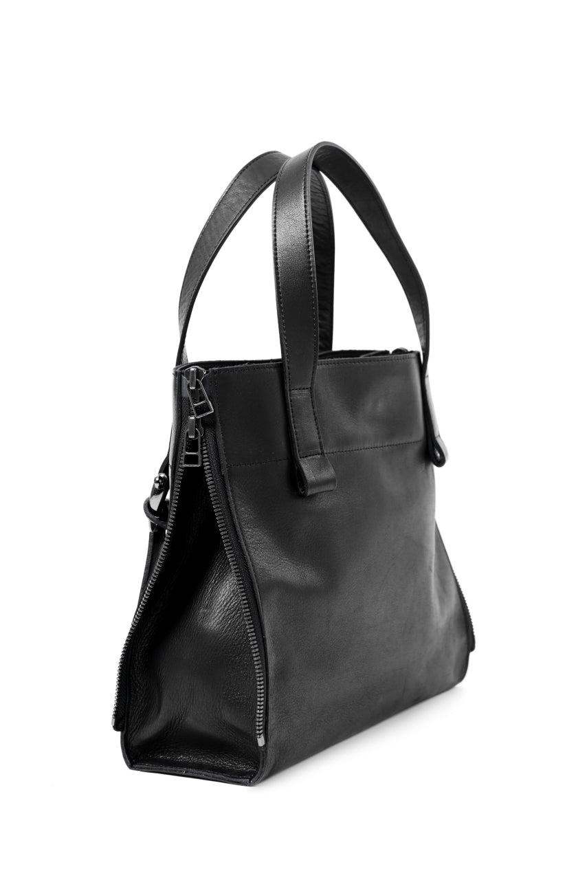 discord Yohji Yamamoto Side Zip Tote Bag S / Soft Shrink Cow Leather (BLACK)