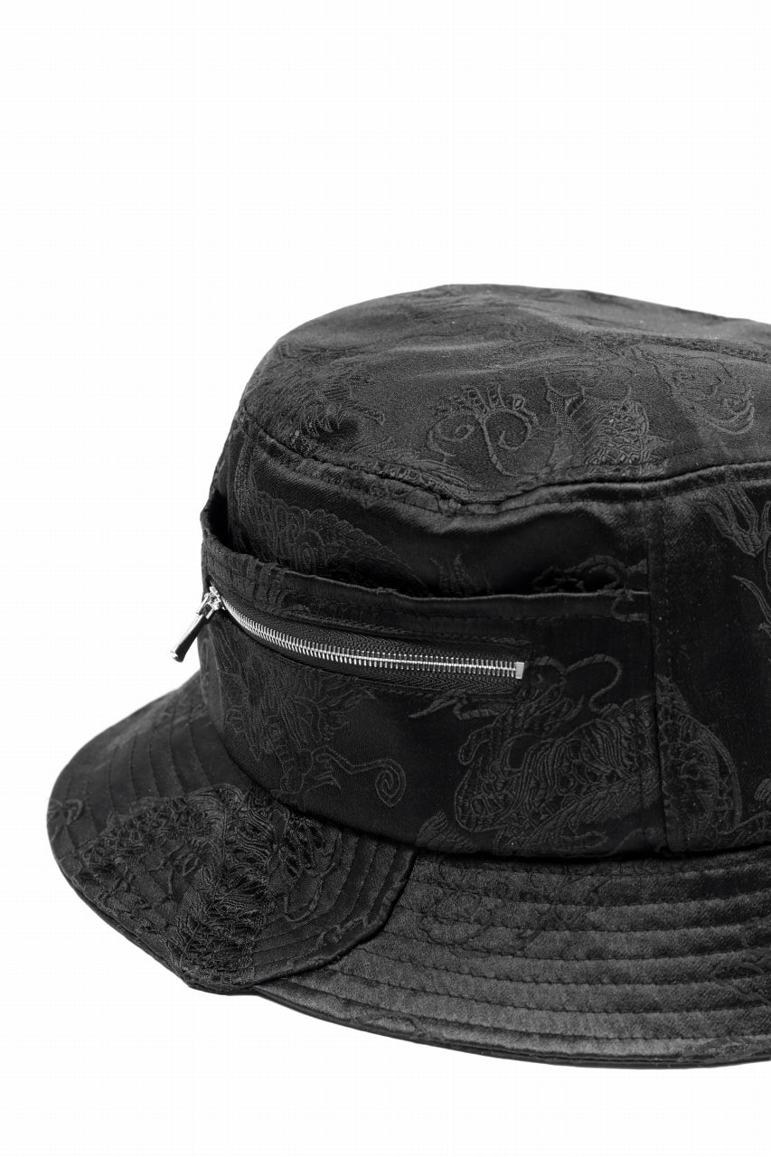 ・Black dragon pattern satin bucket hat from F.C.W 24SS