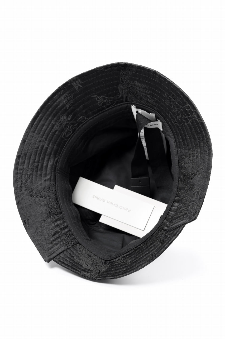 Feng Chen Wang BLACK DRAGON PATTERN SATIN BUCKET HAT (BLACK)