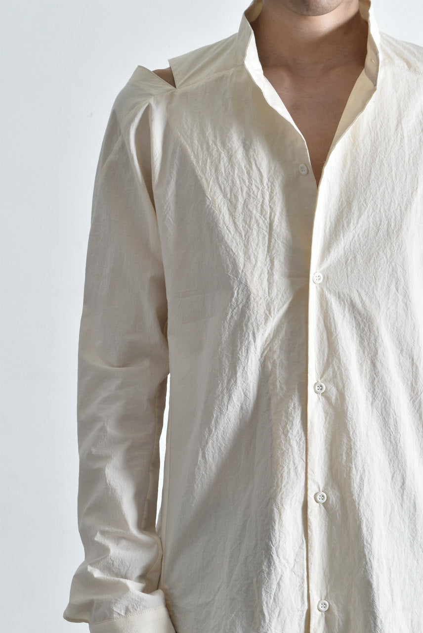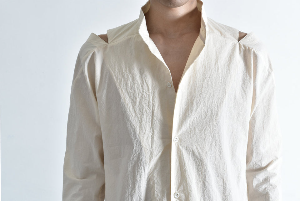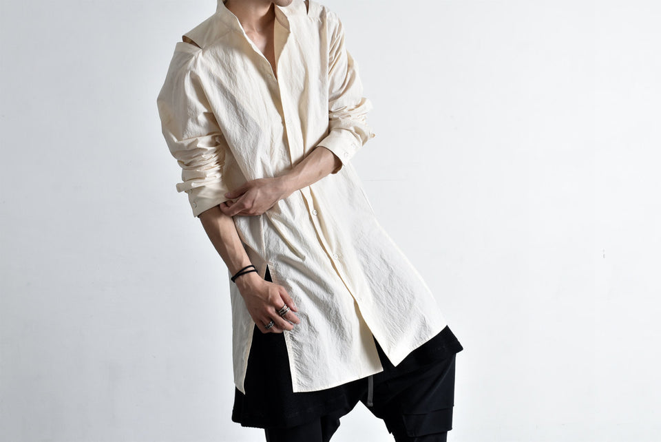 N/07 "MAUSK Detail" SLIT-SHOULDER LONG SHIRT (ECRU)