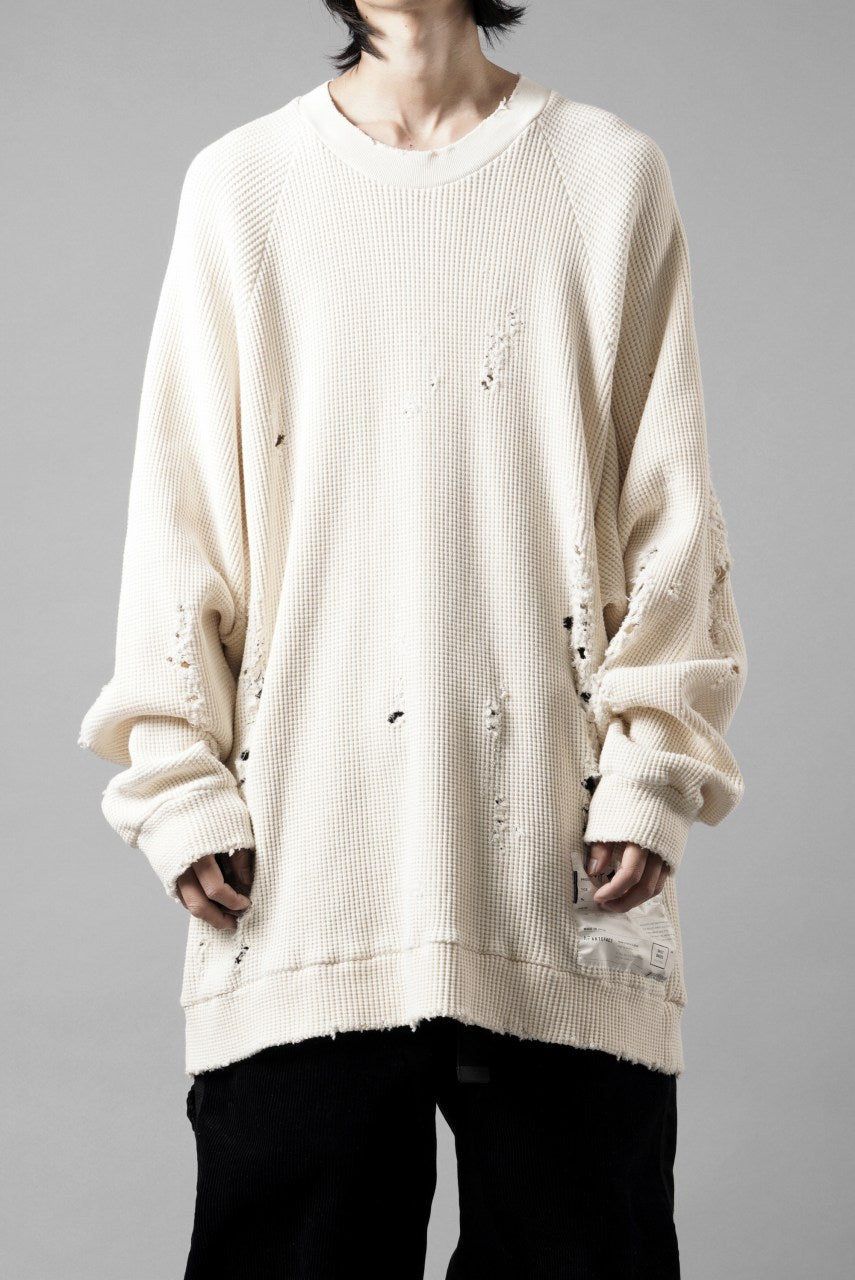 【SAMPLE SALE】A.F ARTEFACT OVER SIZED DOLMAN LONG PULL OVER / CRASHED WAFFLE COTTON JERSEY (IVORY)
