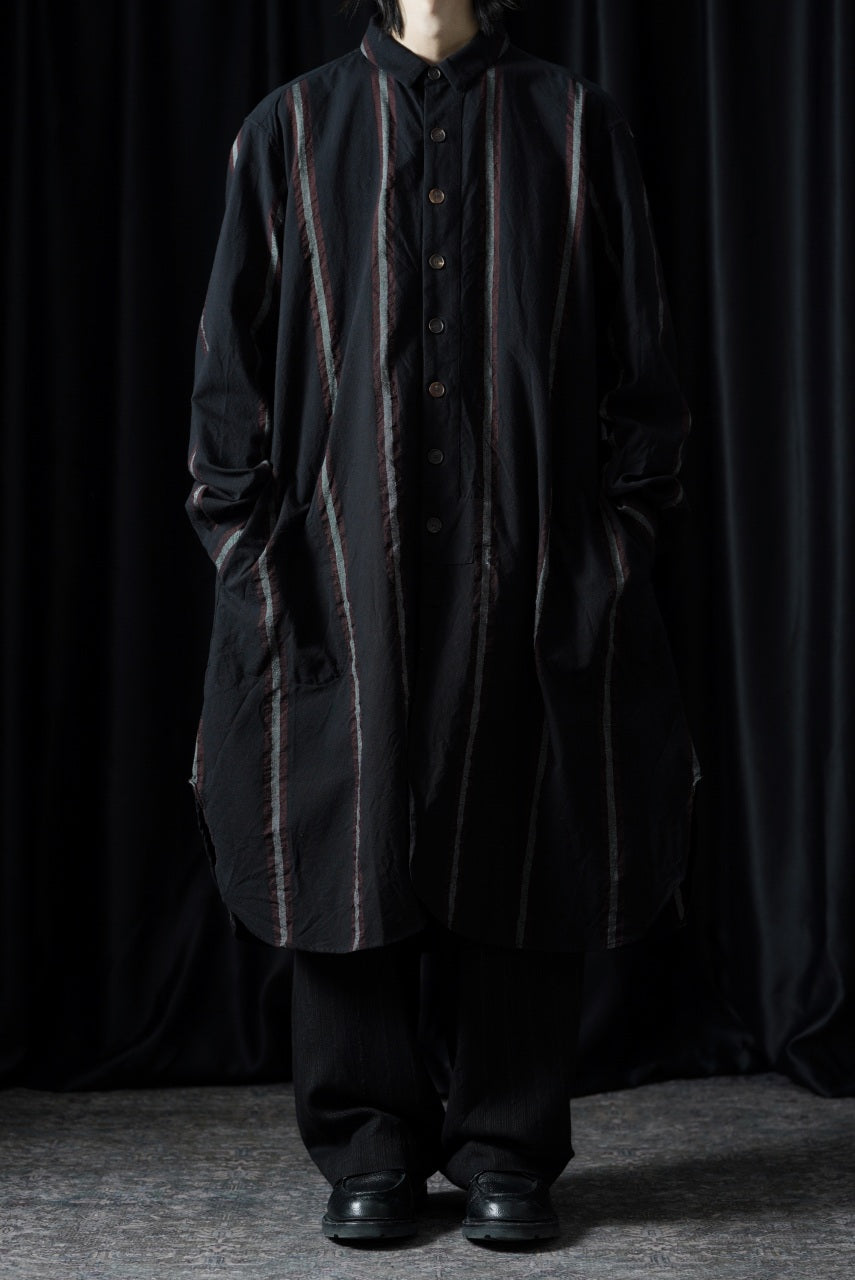 YUTA MATSUOKA shirt coat / tussah linen stripe (black stripe)
