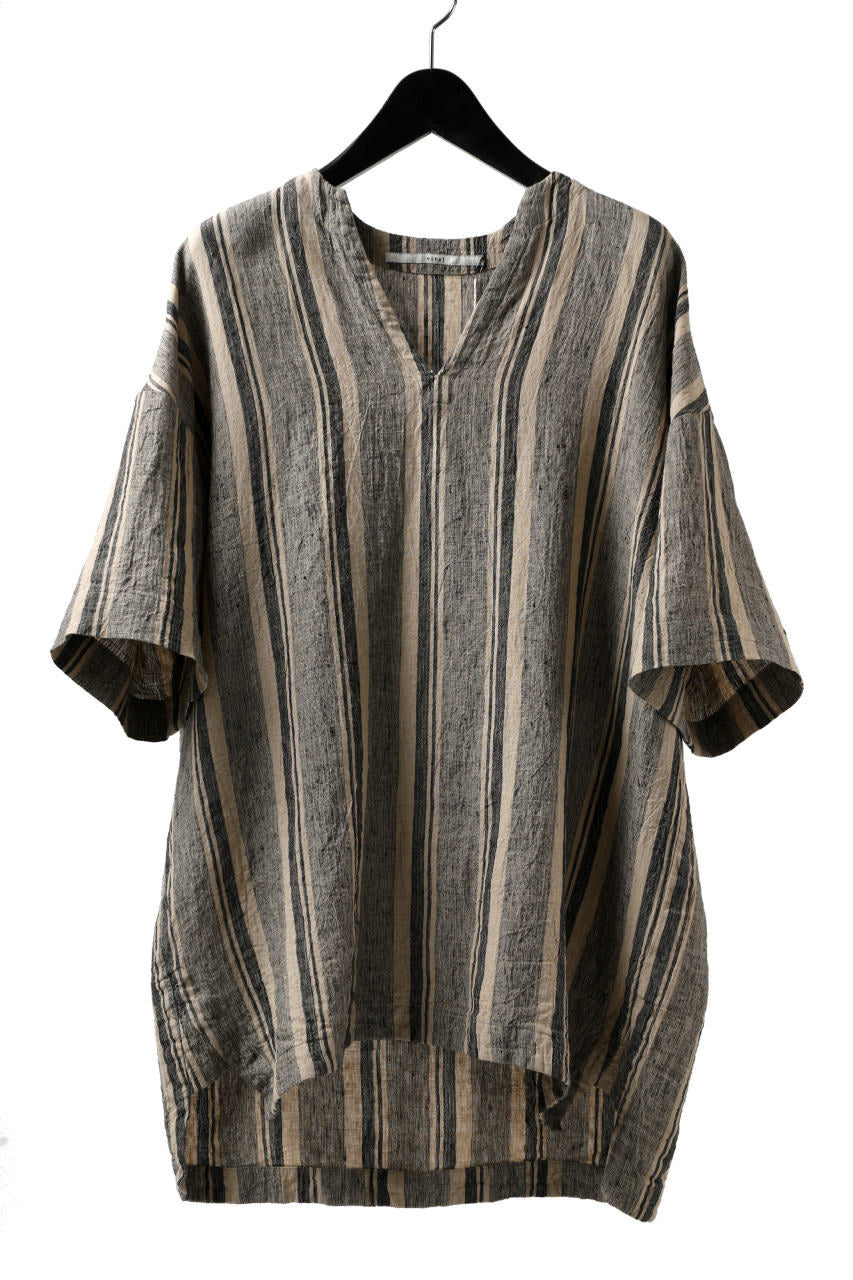_vital exclusive minimal tunica tops / antique random stripe linen (BEIGE x BLACK)