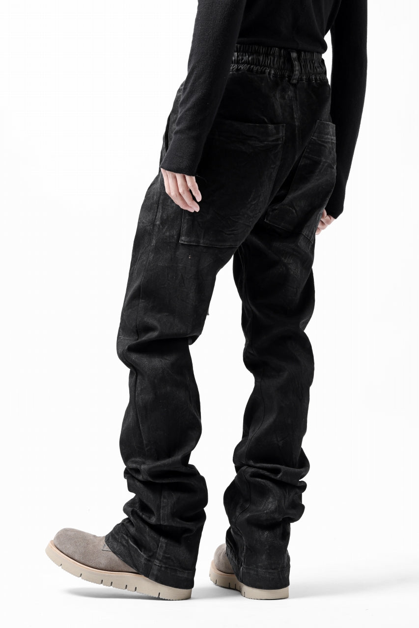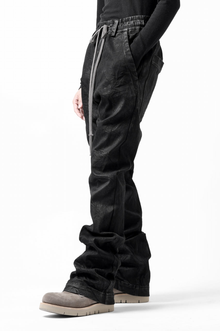 A.F ARTEFACT COATED FLARE LONG PANTS / HI-STRETCH DENIM (BLACK)