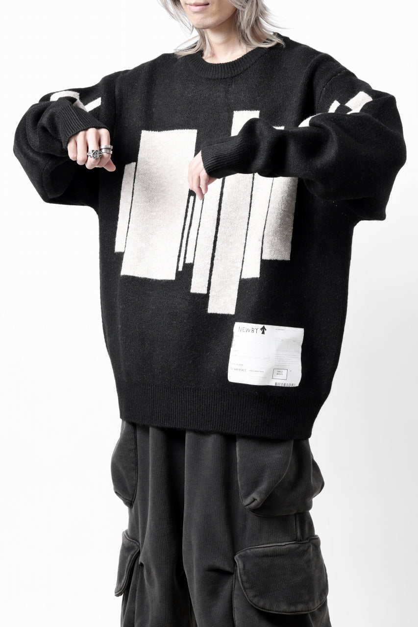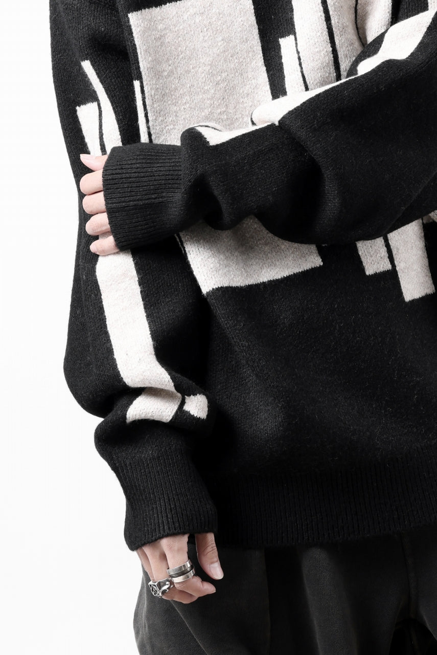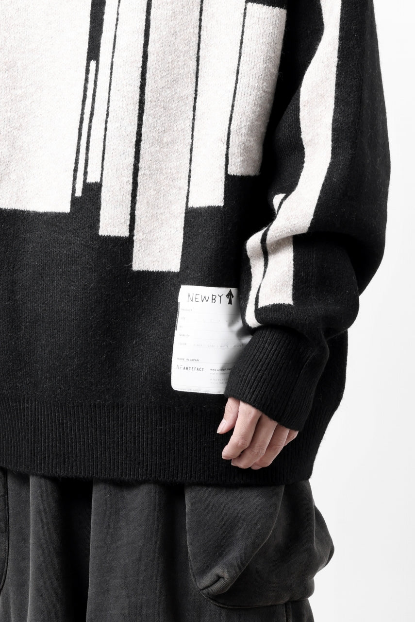 A.F ARTEFACT GEO PATTERN KNIT TOPS (BLACK x BEIGE)