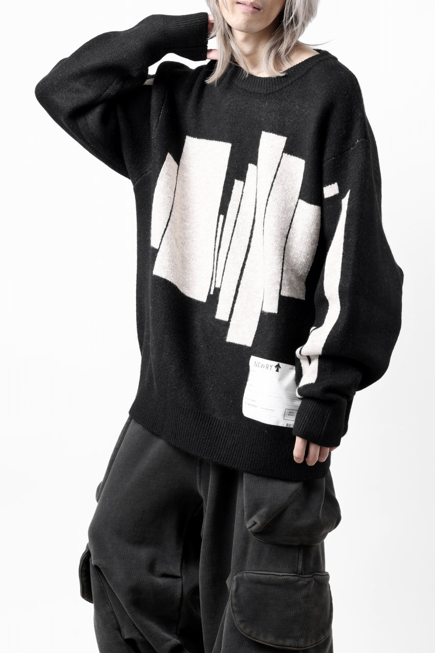 ・23AWのキー、ジオメトリックのジャガード総柄のニットトップス