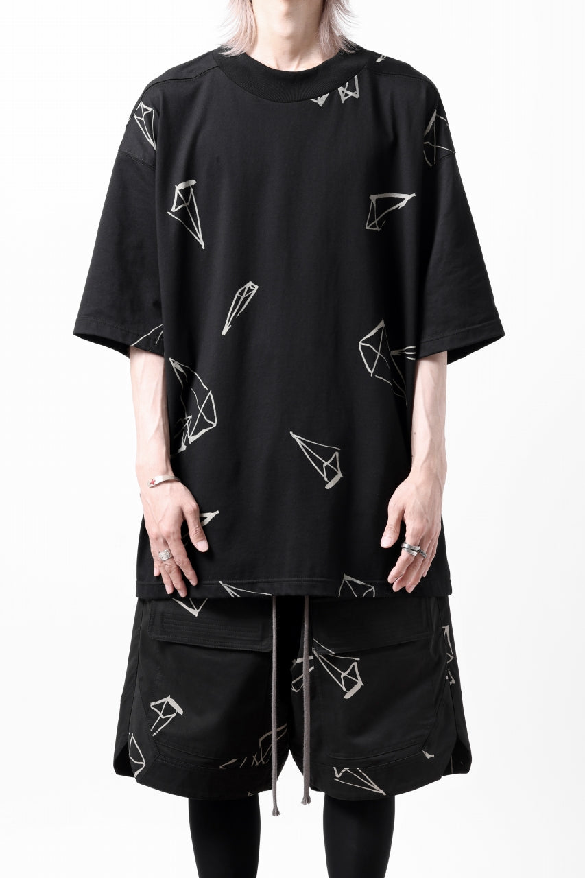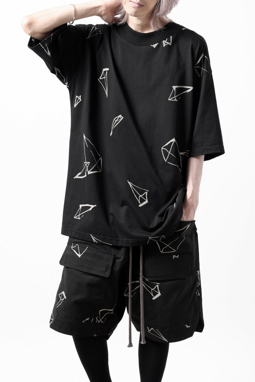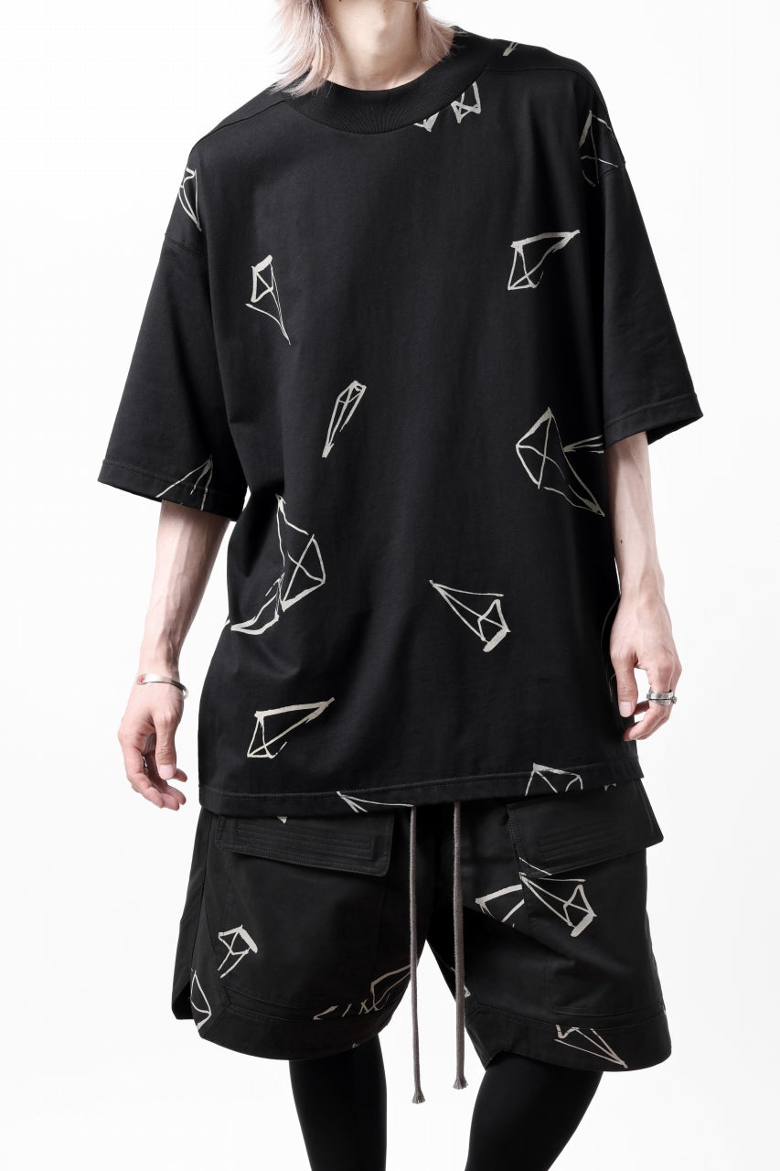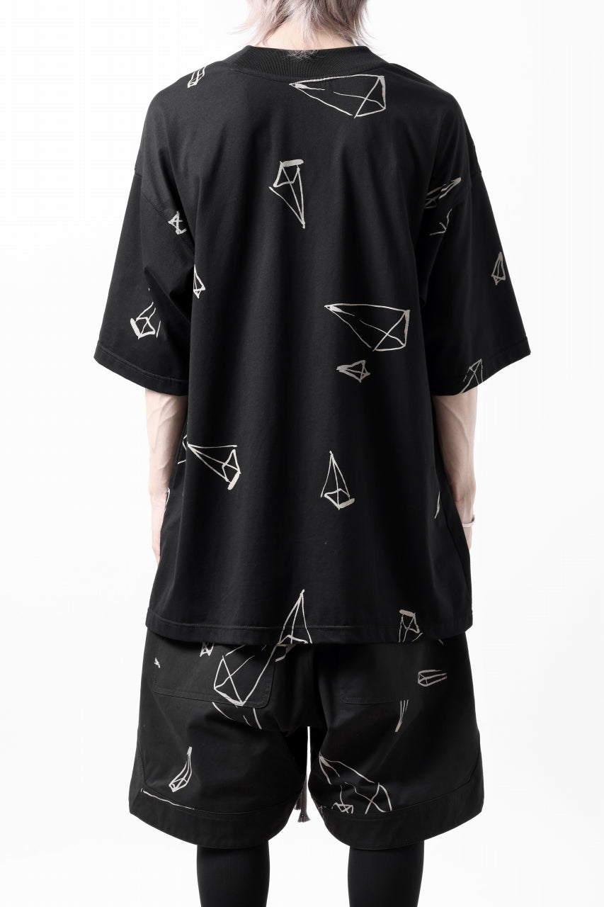 A.F ARTEFACT PYRA PATTERN PRINT THICK-COLLAR LOOSEY TEE (BLACK)