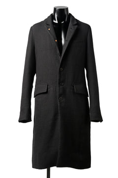 ・ツイードの斜向の陰影感が放つ、立体構築感に秀でたロングコートの作品。