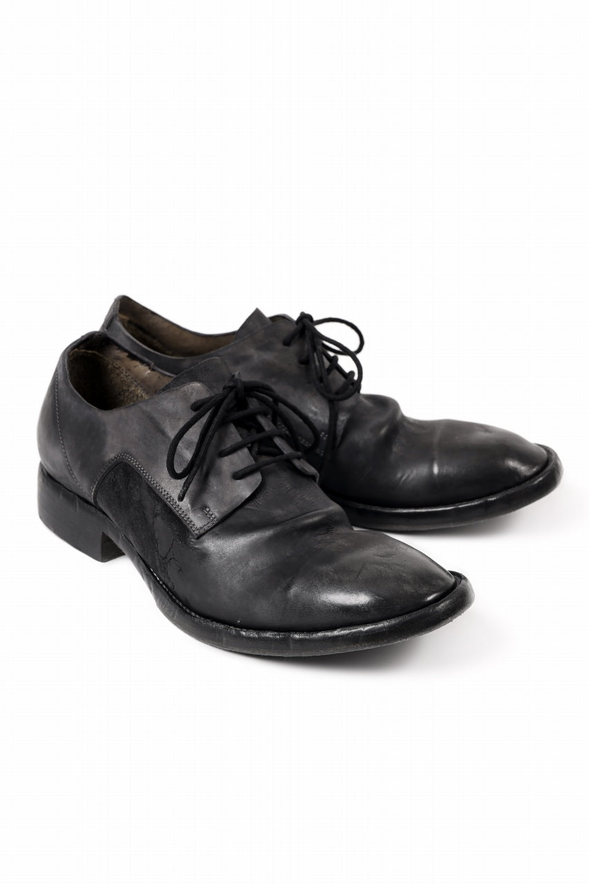 BORIS BIDJAN SABERI HORSE CULATTA SKIN DERBY SHOES / OBJECT DYED AND HAND-TREATED "SHOE2.1" (BLACK)