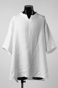 COLINA KEY NECK PULLOVER SHIRT / HERRINGBONE LINEN (WHITE)