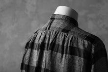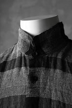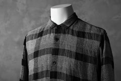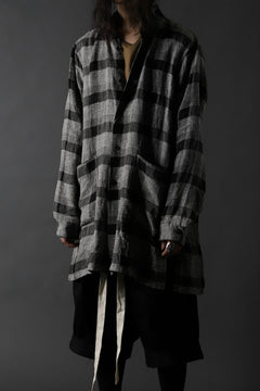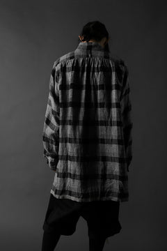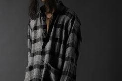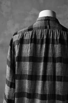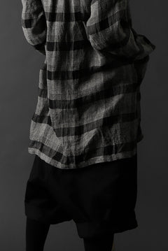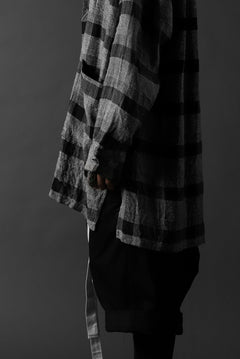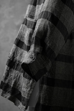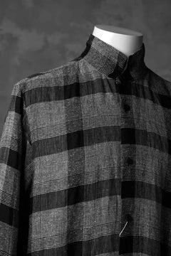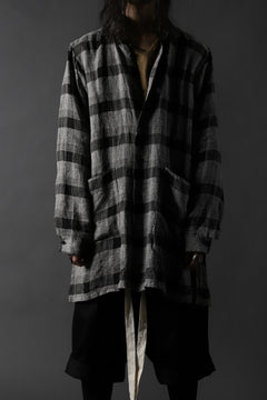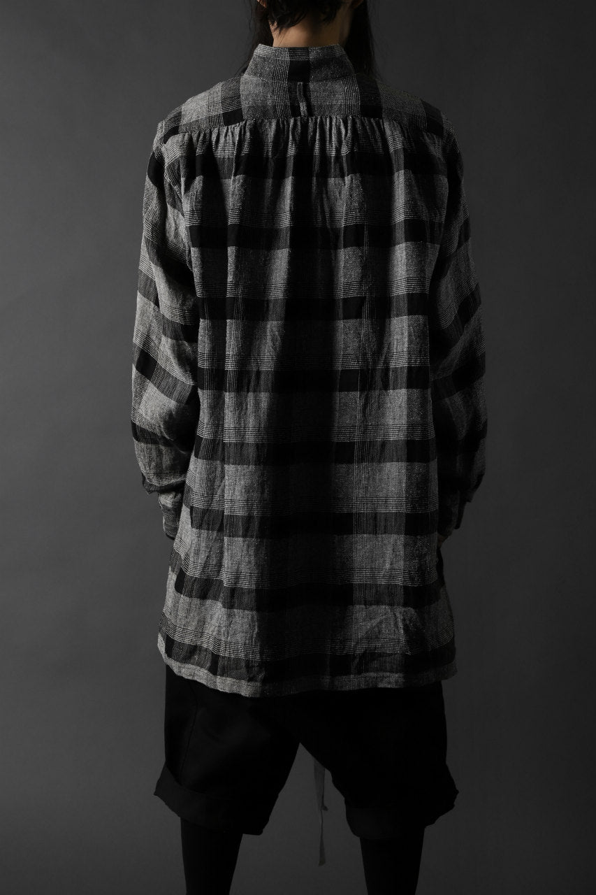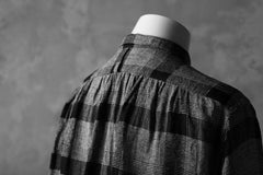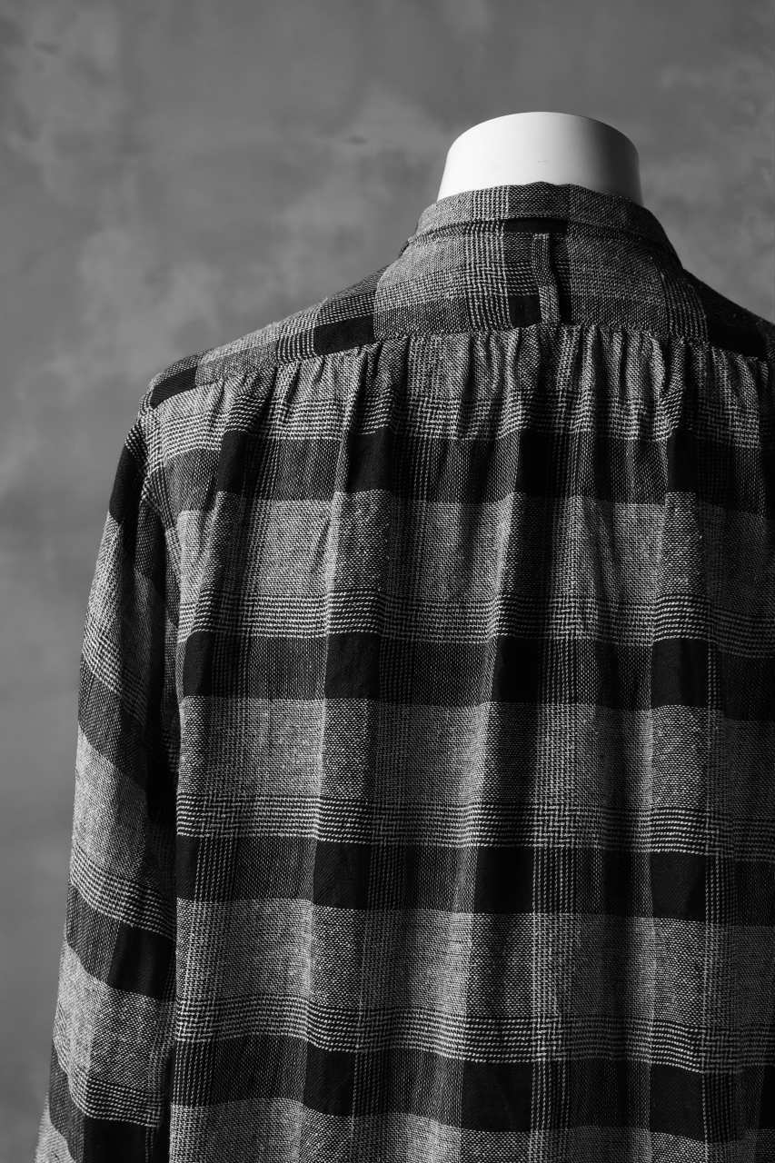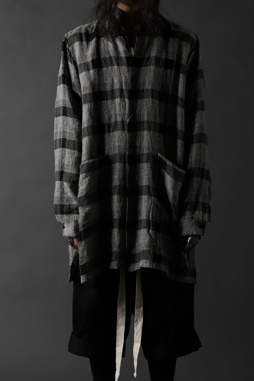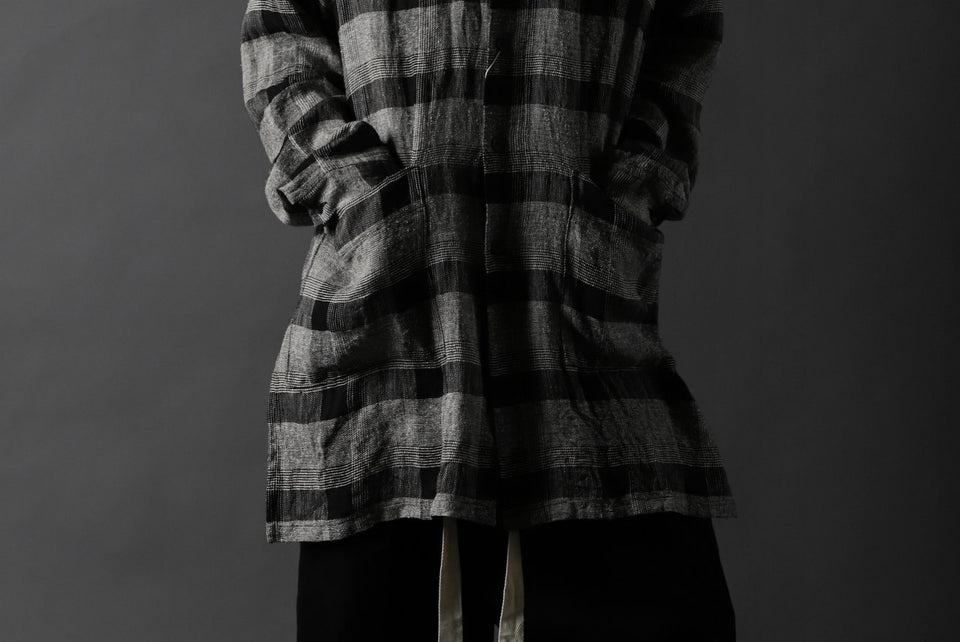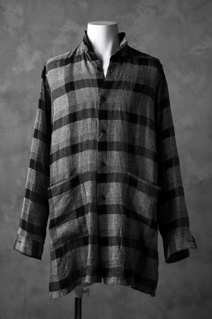 襟元や袖口、そして裾口にそれぞれ段差を設けて、チェック柄と共に能動的なフォルム。