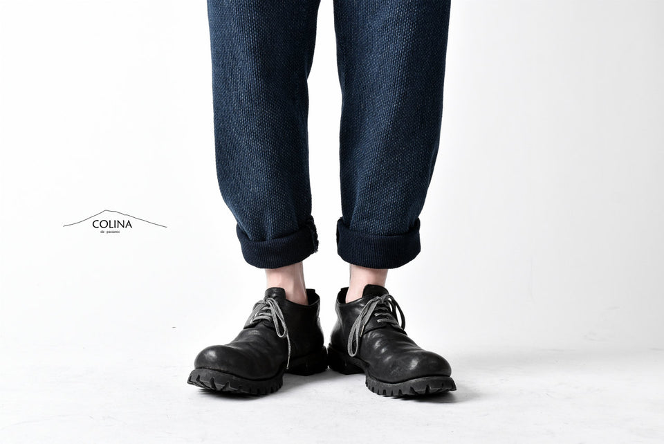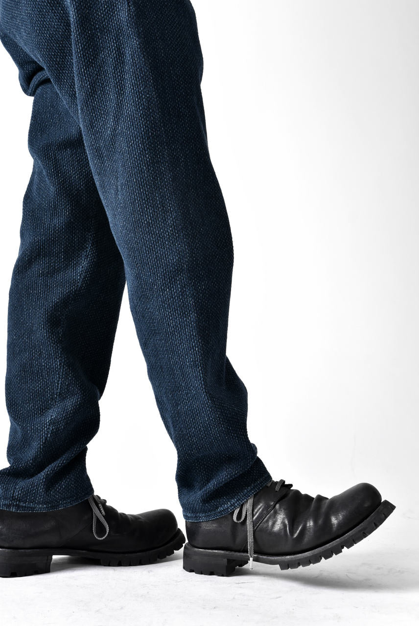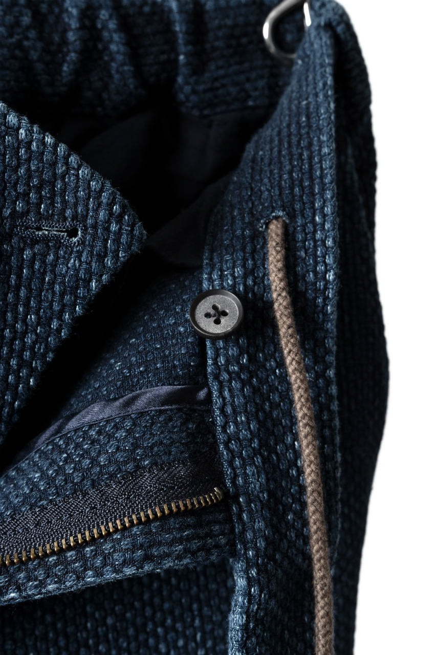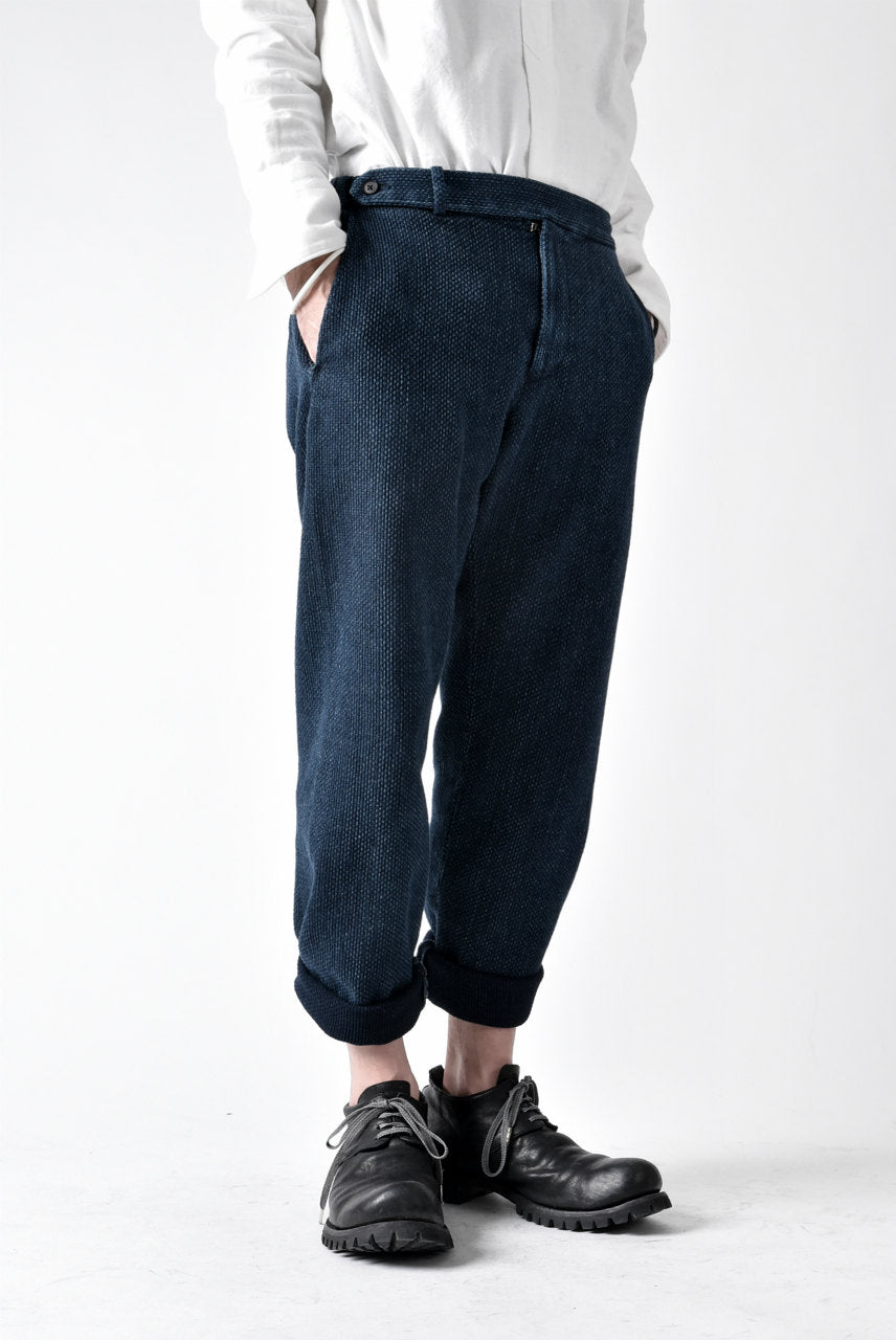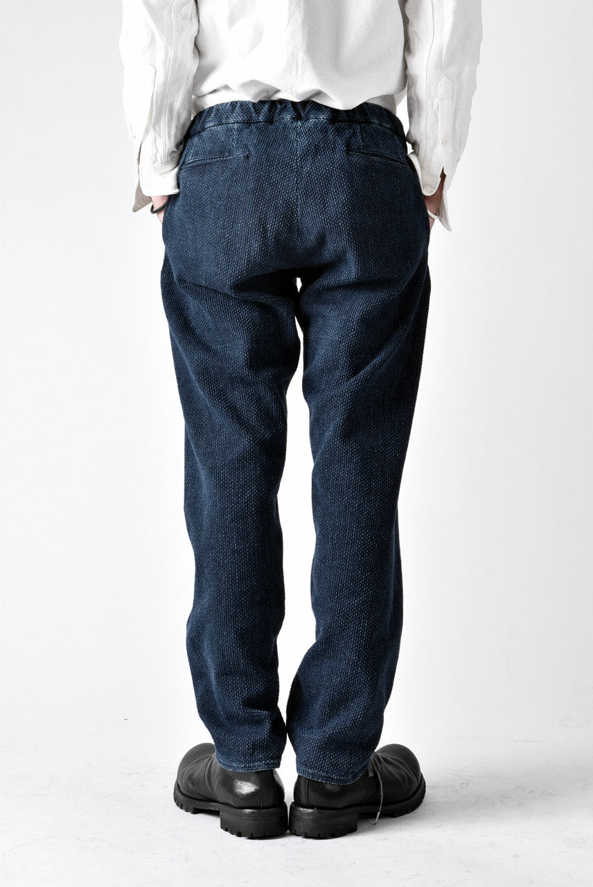 独特の表情を持つ刺し子生地を用いた、テーパード・トラウザースです。