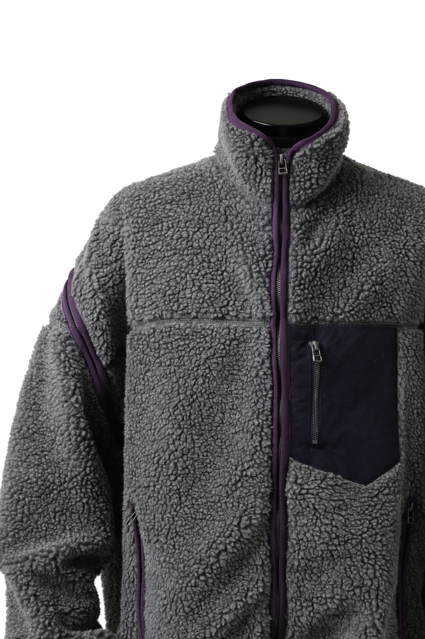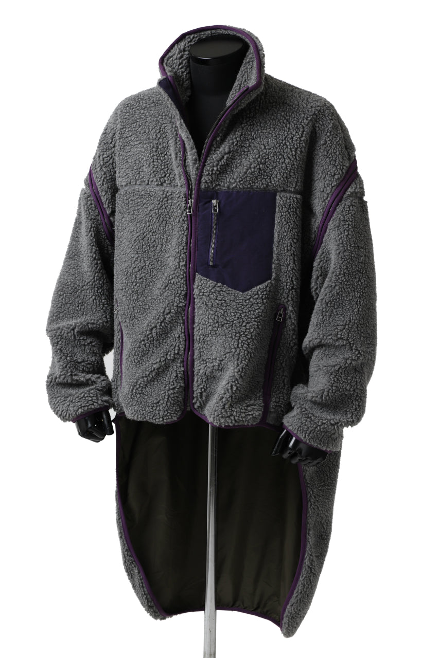 FACETASM HIGH-LOW ZIPPER FLEECE JACKET (GREY)