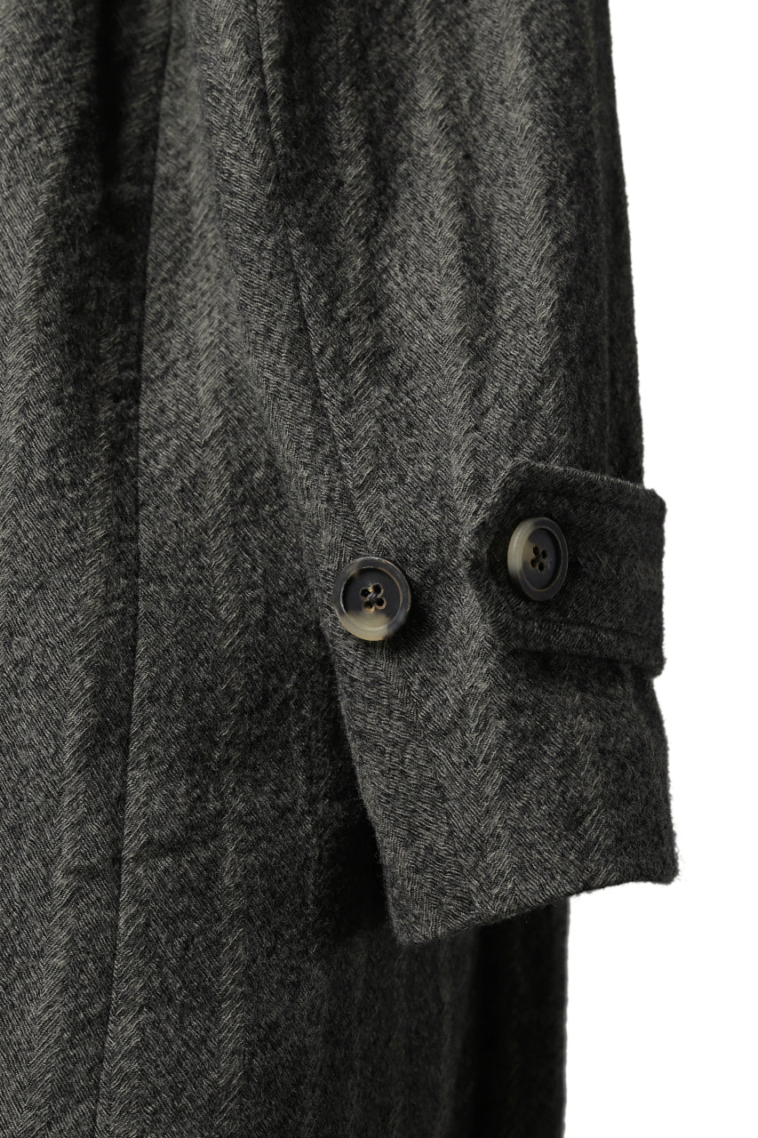 ・ステンカラー、比翼仕立てのフロント、ミニマルなデザイン性がシックに纏めます。