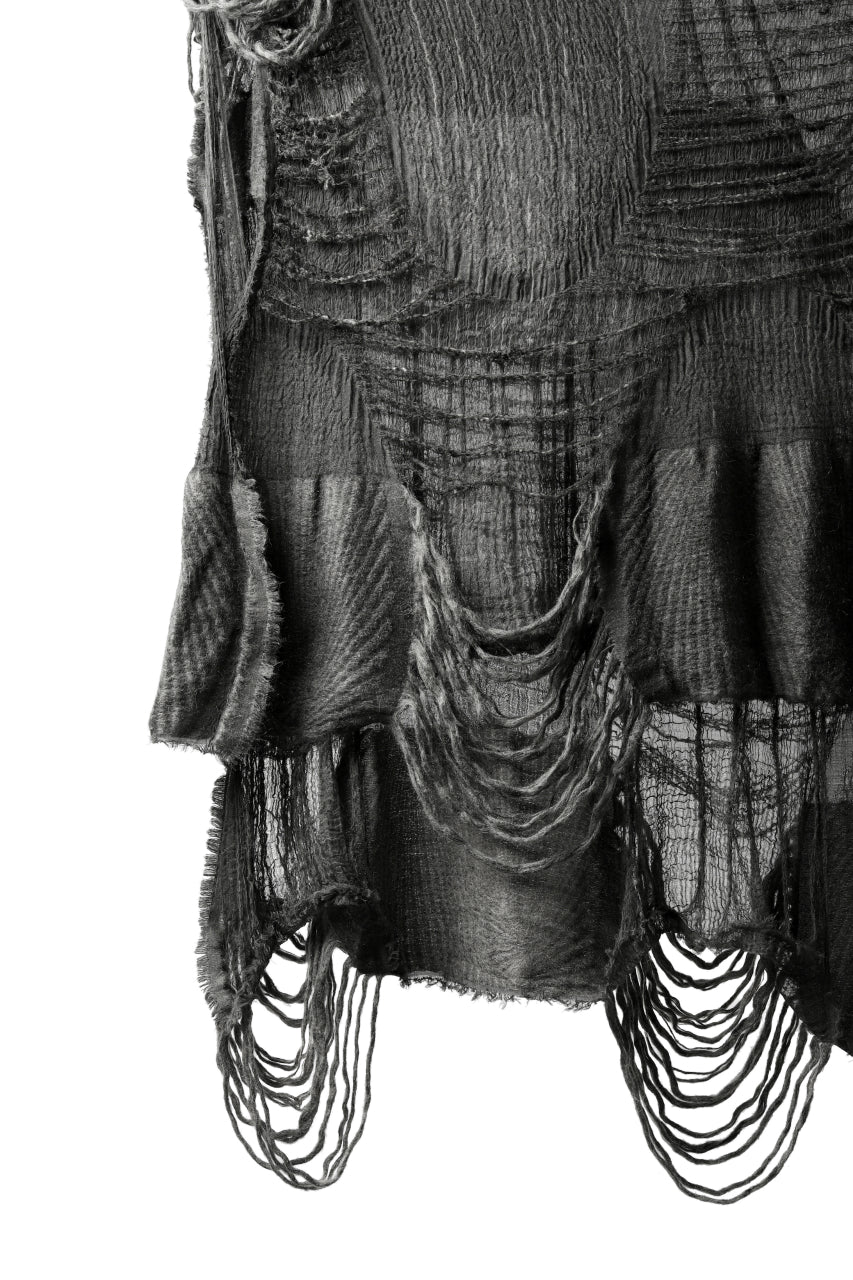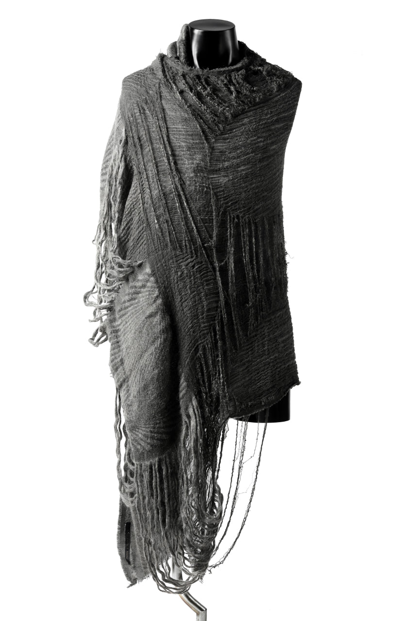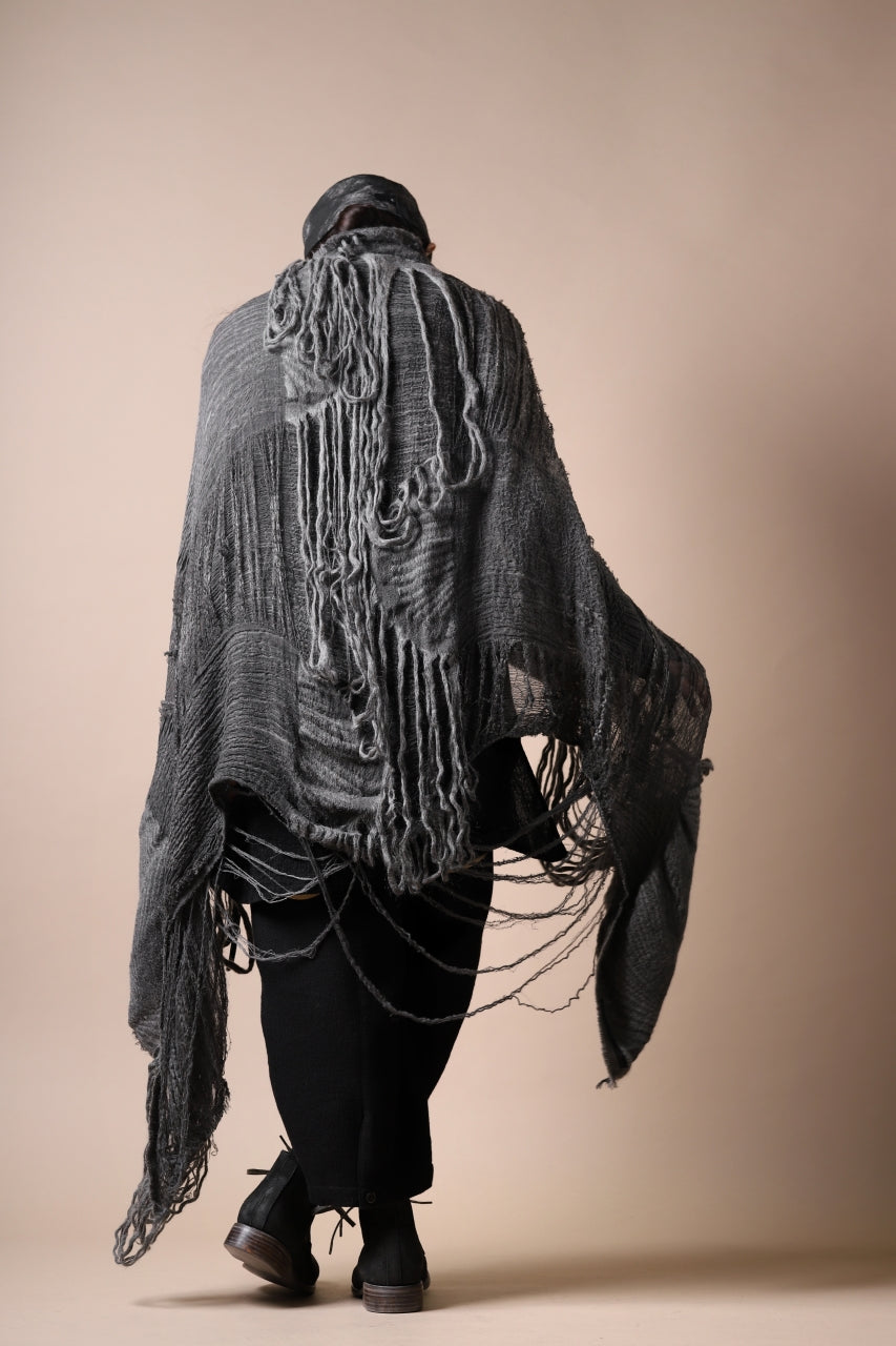 ・大判のストールを基にハンドメイドで、"引裂き""解れ"を表現。