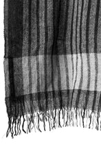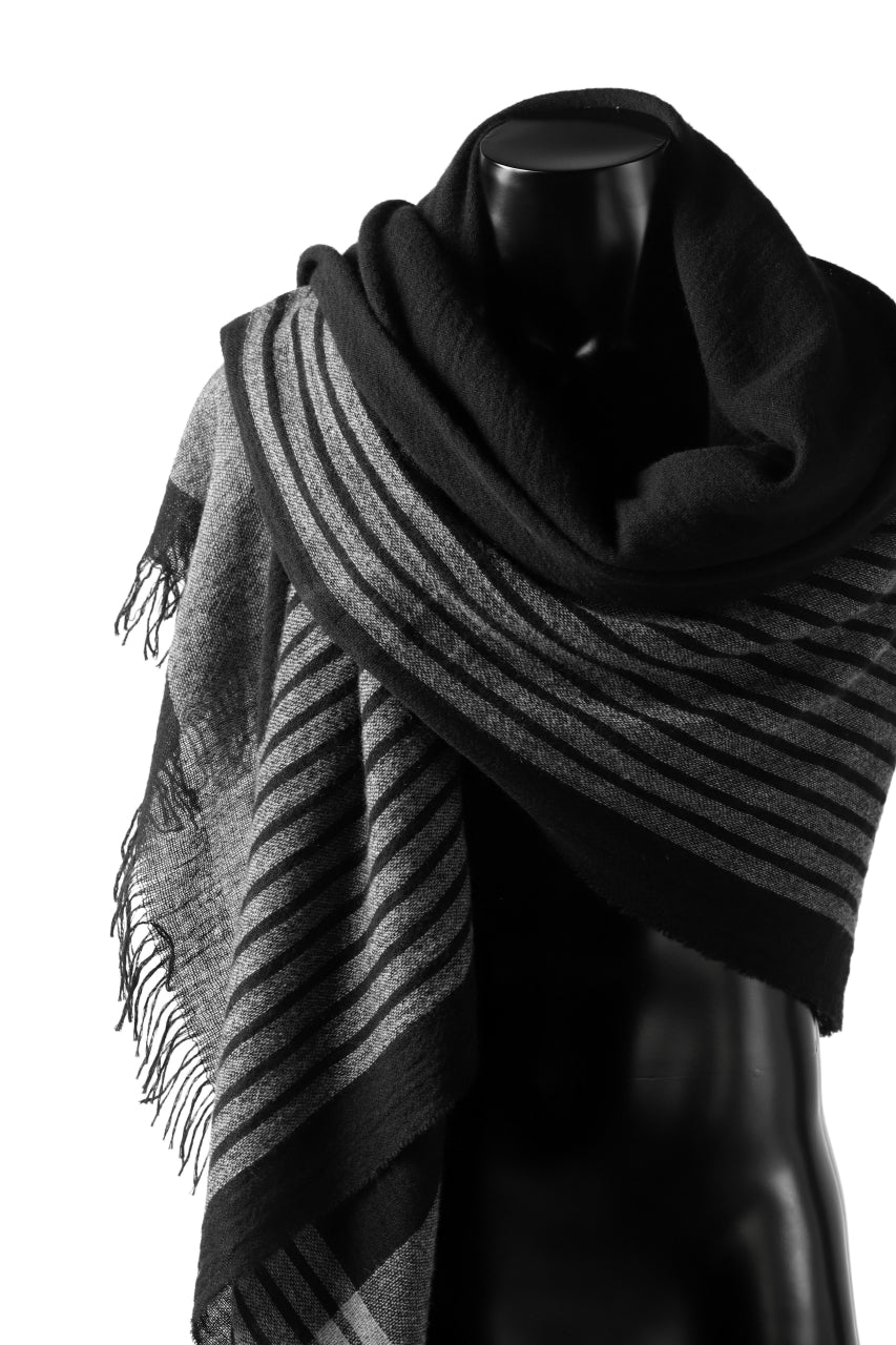・モノトーン基調にストライプやブロックパターンをデザインした大判ストール。