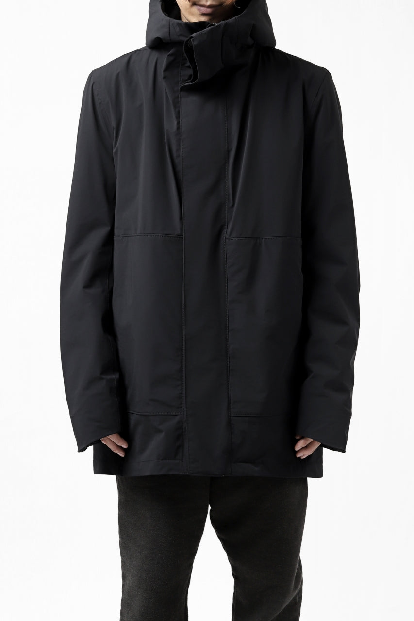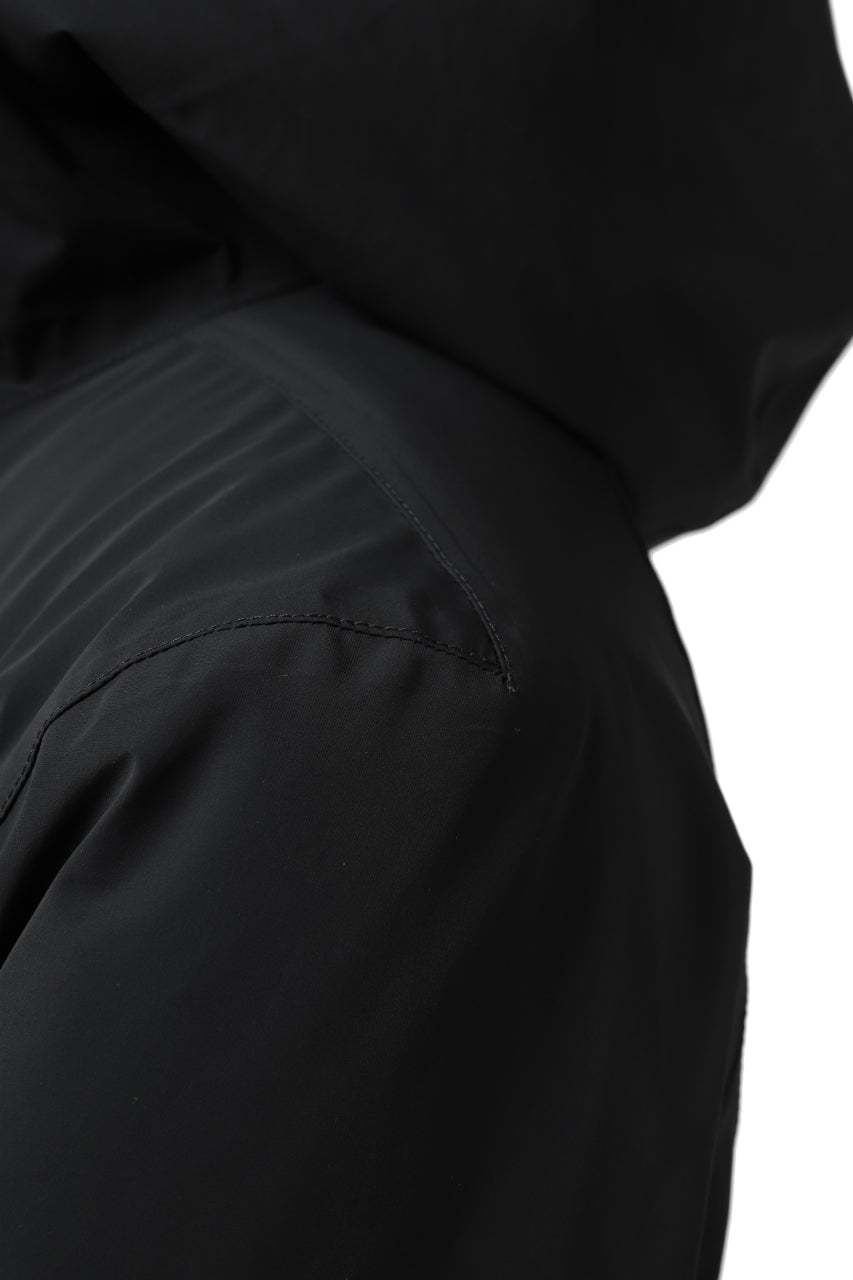 ・ハイネックからフードに繋がる立体構築のデザインが光るディティール