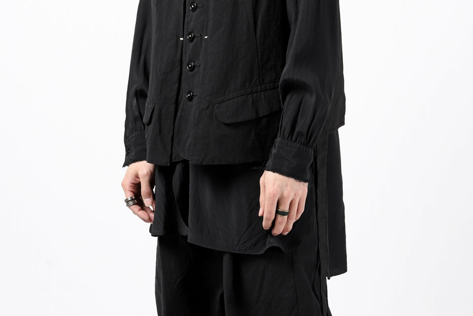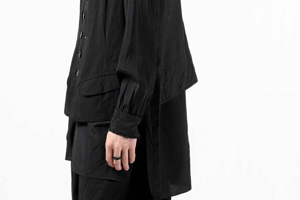 ・フロントのレイヤード調の切替デザインが特徴的なジレベスト